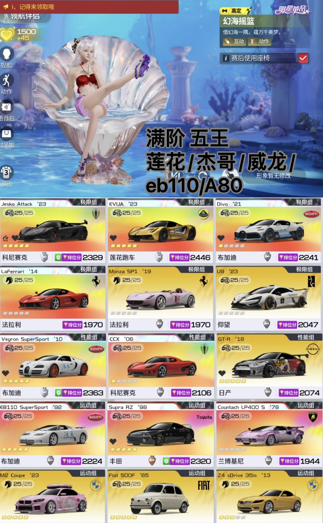 【苹果】 满阶五王✅满阶莲花/杰哥✅满阶威龙✅满阶eb110/满阶a80