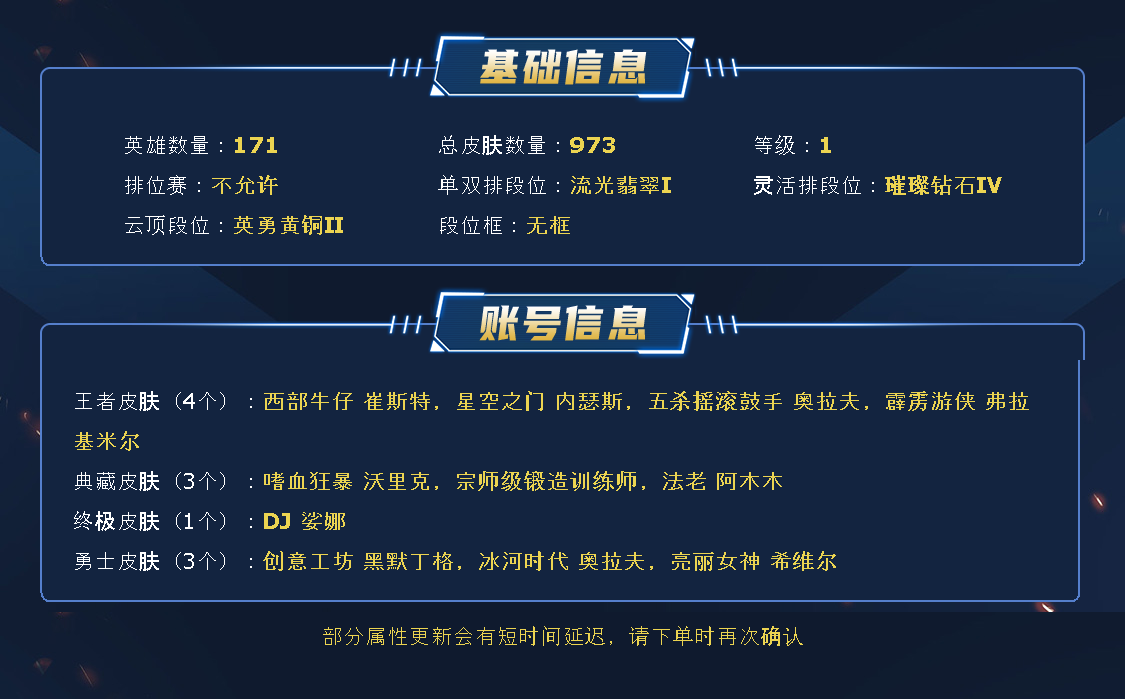 【全英雄可排位634原皮肤】至臻希维尔、至臻寡妇、至臻阿卡丽、至臻阿狸、至臻男刀、至臻妮蔻、至臻凯隐、至臻女警、至臻小鱼人、至臻瑟提、至臻拉克丝、至臻奶妈、至臻婕拉、至臻瞎子、水晶巫灵泽拉斯、水晶掠夺者卡兹克、海克斯大嘴、蛇年阿木木、玉剑泽丽、牛年安妮、牛年厄斐琉斯、鼠年瑟提、鼠年德莱文、玉剑男刀、司马懿、狗年狼人、狗年狗头、电玩阿狸、虎痴之拳蔚、猴年猴子、勇敢的心诺手、殿堂传奇妖姬、绝息圣堂锐雯、黎明使者永恩、太空律动机器人、女帝卡特琳娜、青花瓷EZ、战斗学院女警、玉剑奶妈、泳池派对布隆、泳池派对皇子、泳池派对佐伊、海之歌豹女、养蜂人、冠军蔷薇妖姬、征服者贾克斯、征服者泰坦、DWG烬、至高天玛尔扎哈、灵魂莲华艾翁、源计划船长、泳池派对图奇、奶酪首领图奇、巨神蜂机器人、星界圣骑赛恩、黑夜使者狗头、海魔女卑尔维斯、妖怪艺术家婕拉、灵之菊奇亚娜、心之钢EZ、心之钢永恩、至高天劫、至高天奎桑提、西部魔影天使韦鲁斯、青花瓷女枪、青花瓷莫甘娜、青花瓷拉克丝、绝息圣堂吸血鬼、绝息圣堂霞、海珀利安小队狗头、刃执事德莱文、黎明使者莫甘娜、巅峰之星李青、正义之枪卢锡安、秩序之舌塔姆、欲望之主泽拉斯、破败军团卡尔玛、破败军团龙女、太空律动拉克丝、太空律动雪人、太空律动格温、太空律动莎弥拉、月蚀骑士赛娜、源计划韦鲁斯、战斗学院日女、战斗学院孙悟空、山海绘卷巴德、山海绘卷大虫子、魔女蛇女、神龙尊者狗熊、神龙尊者卡尔玛、神龙尊者火男、圣龙奥瑞利安索尔、新KDA阿狸、灵魂莲华蛇女、灵魂莲华奶妈、灵魂莲华提莫、灵魂莲华永恩、灵魂莲华莉莉娅、灵魂莲华千珏、灵能特工慎、灵能特工蔚、咖啡甜心希维尔、古神石头人、古神狼人、凤凰星神、双鱼星神、人马星神、屠龙勇士奥拉夫、地下都市卡牌、抵抗军雷神杰斯、抵抗军绿魔辛吉德、五杀摇滚约里克、DJ、万圣节机器人、地底世界、黎明使者薇恩、万圣节莫甘娜、情人节悠米、制胜金球、暗星锤石、暗星尊烬、黑夜奶妈、黎明奶妈、黑夜亚索、黎明锐雯、神拳、屠龙勇士潘森、未来战士女警、西部寒冰、星守洛、星守霞、星守金克丝、耀星女神拉克丝、源计划薇恩、源计划寒冰、战斗学院EZ、真实伤害艾克、暗星石头人、黯晶巨牛、黯晶巨鳄、黯晶巨兽、黯晶战神、奥德赛卡牌、奥德赛希维尔、貂蝉、地狱火阿木木、地狱火死歌、地狱火韦鲁斯、关羽、黑夜使者厄斐琉斯、舰队司令烈娜塔、喵里克、奈落之炎凯南、奈落之炎慎、绒毛菲兹、塔里克辉盾、未来战士卢锡安、未来战士剑姬、未来战士锐雯、武神、西部诺手、西部人马、孙尚香、小蜜蜂大嘴、小蜜蜂玛尔扎哈、小蜜蜂悠米、腥红之月剑魔、永恒之森小法、宇航员巴德、宇航员龙龟、宇航员茂凯、玉剑莫甘娜、玉剑锐雯、玉剑剑圣、源计划金克丝、源计划狼人、战斗悠米、战斗杰斯、战斗卡特