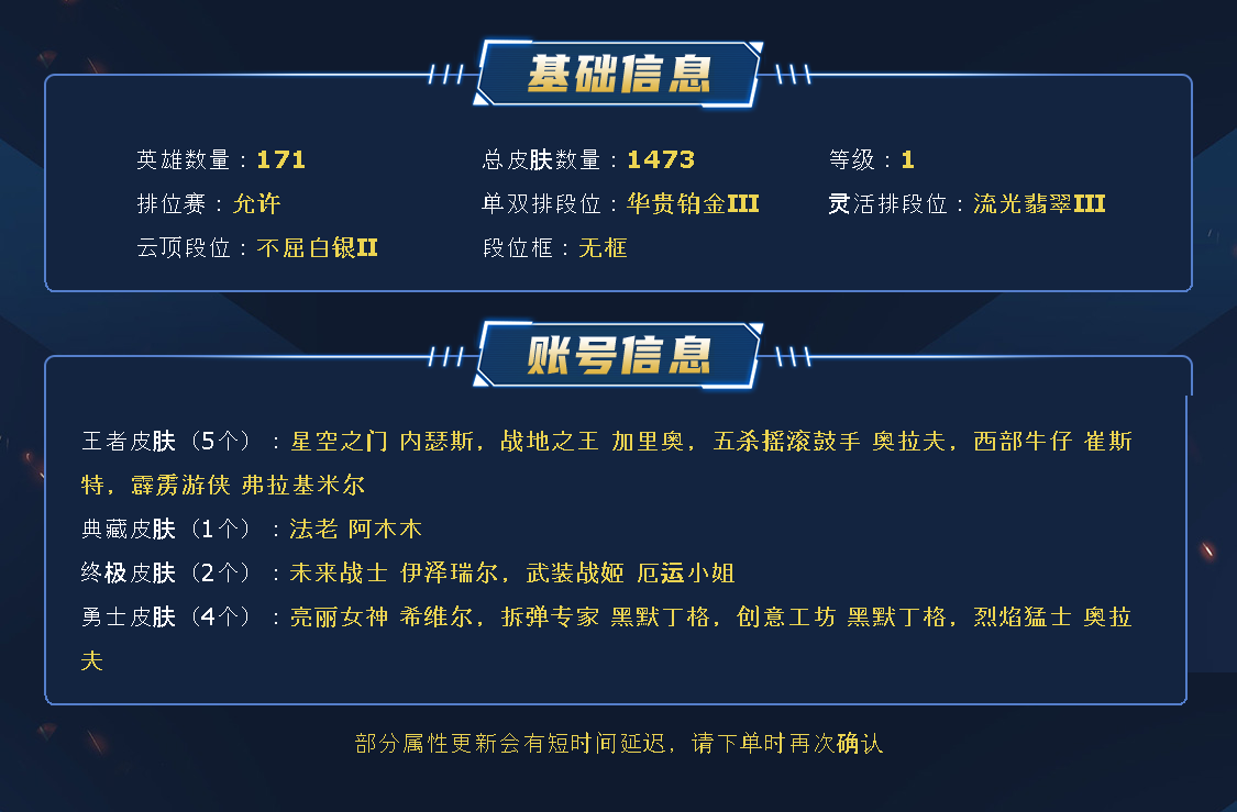 ~~喜欢记得收藏~~可排位~~1500皮全英雄~~租之前尽量查一下游戏ID,确保段位是您需要的,避免浪费您的时间~~请勿挂机逃跑故意送人头,谢谢合作,谢谢~~