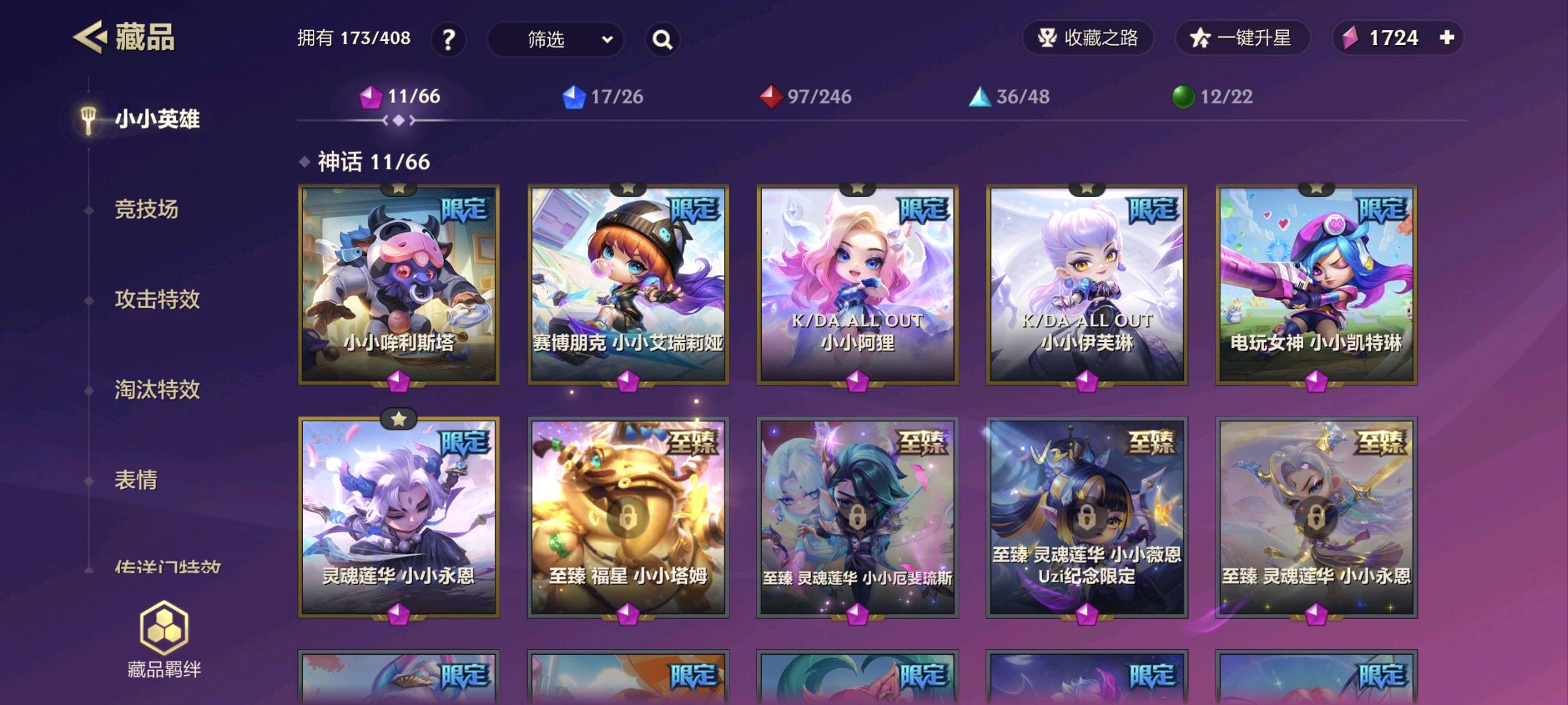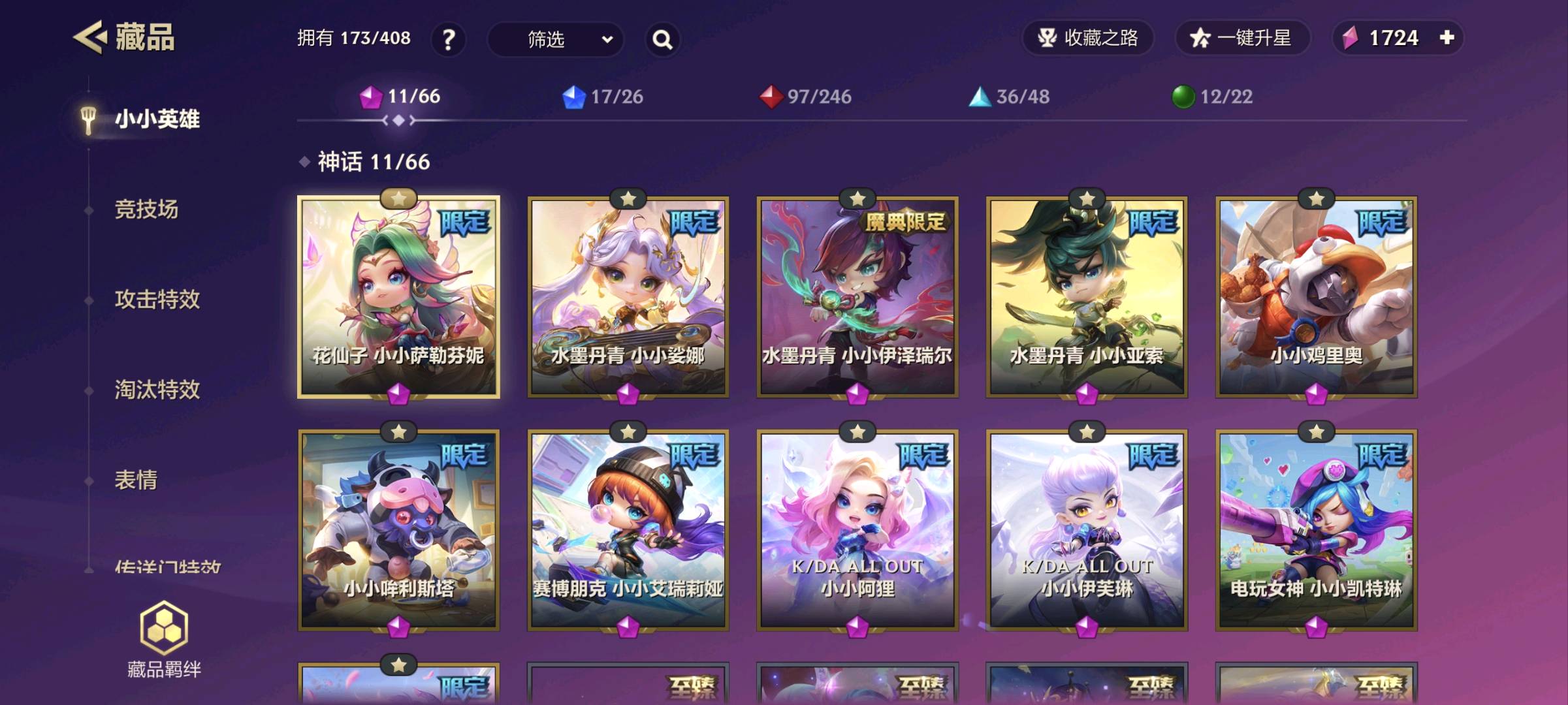 灵魂莲华永恩、花仙子萨勒芬妮、水墨丹青琴女,压缩,EZ、KDA阿狸,寡妇、愚人节的敲钟牛,🐔鸡里奥,赛博刀妹、电玩女神凯特琳
