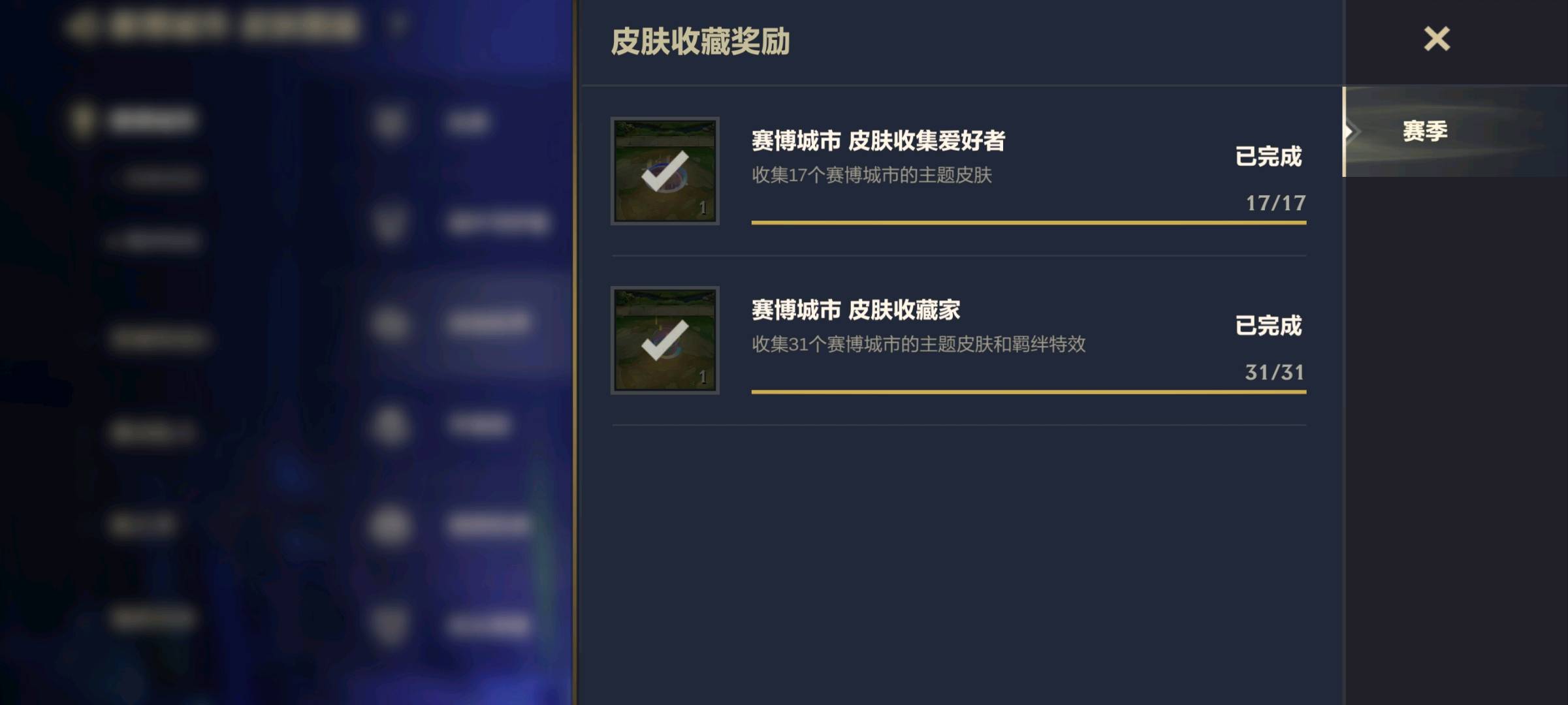 本赛季宝典进度100%,赛博系列皮肤羁绊全部购买