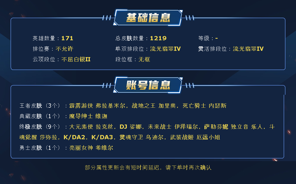 【如遇冻结】(在租号订单处点解除冻结后)请耐心等待三五分钟后重新上号试试 若我们还未解冻再劳烦撤单 感谢老板耐心配合