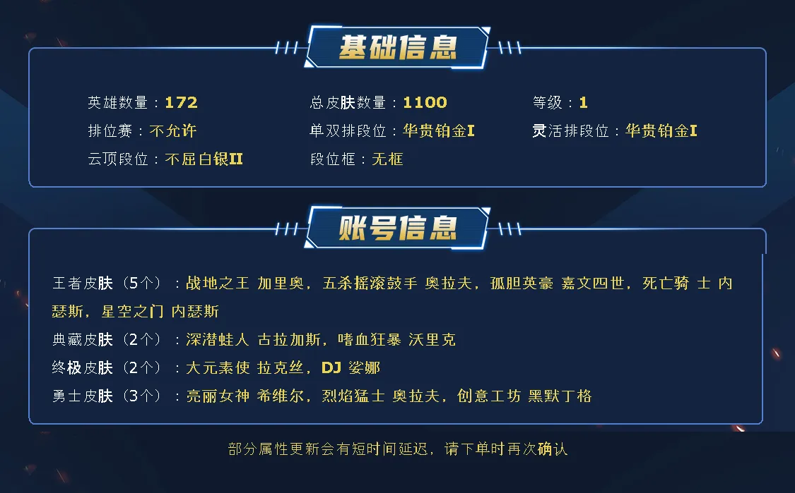 ~~喜欢记得收藏~~可排位~~999皮全英雄~~租之前尽量查一下游戏ID,确保段位是您需要的,避免浪费您的时间~~请勿挂机逃跑故意送人头,谢谢合作,谢谢~~