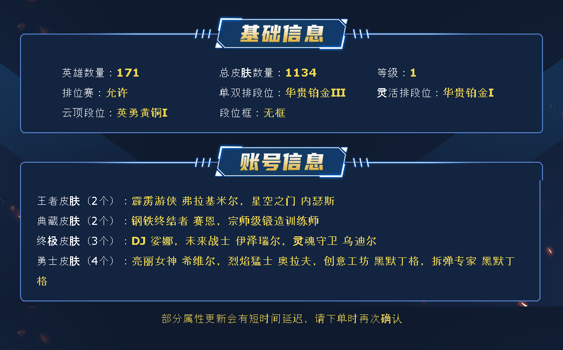 ~~喜欢记得收藏~~可排位~~1123皮全英雄~~租之前尽量查一下游戏ID,确保段位是您需要的,避免浪费您的时间~~请勿挂机逃跑故意送人头,谢谢合作,谢谢~~