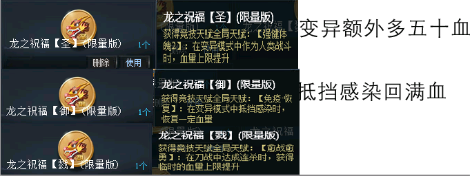 搭配龙之祝福,265血+30减伤+冲击血清2
