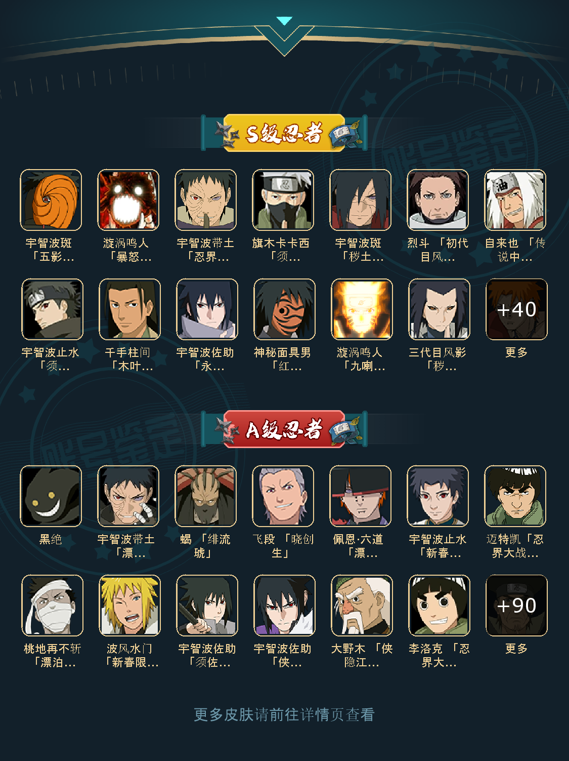 53S 102A 409忍者 宇智波带土「暴怒」/干柿鬼鲛「鲛肌融合」/宇智波佐助「疾风传咒印」/迈特凯「忍界大战」/宇智波带土「忍界大战」/宇智波斑「木叶创立」/佩恩·天道「超」