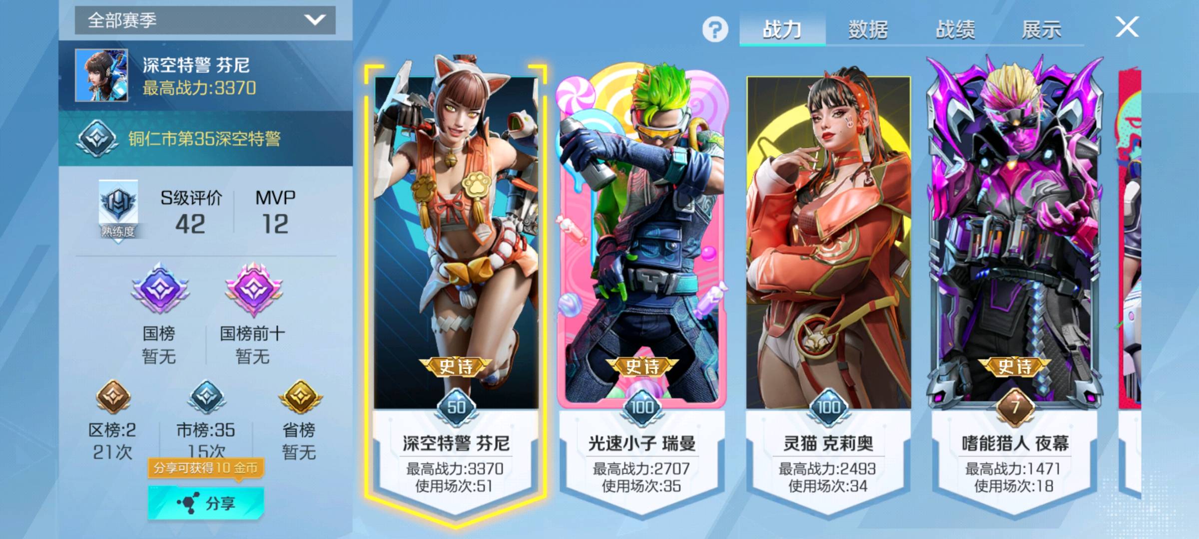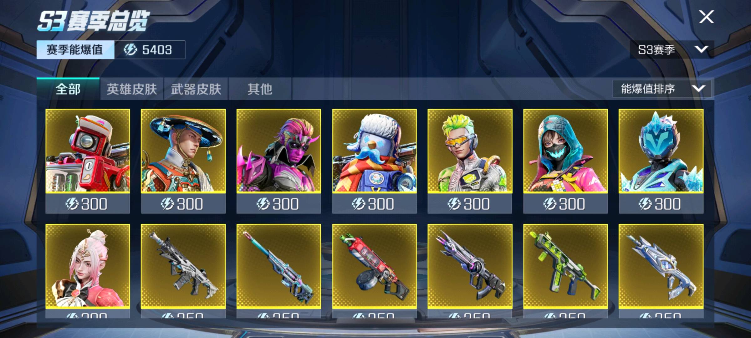 万位热力值,各种皮肤都有
