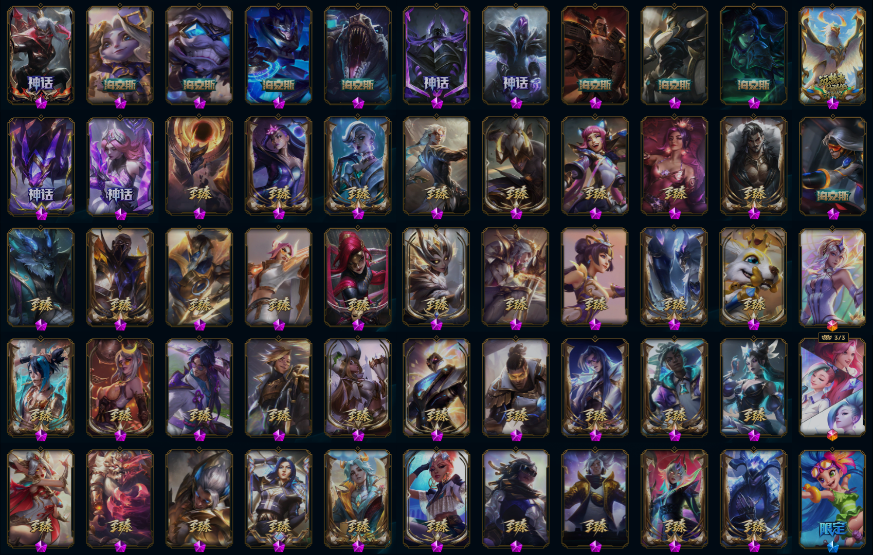 【重要皮肤】莲华温泉厄斐琉斯至臻 黑色玫瑰假面舞会卡特琳娜至臻 双城之战2指挥官凯特琳至臻 狼神英灵斯维因至臻 暗星女王黛安娜至臻 T1杰斯至臻 至高天凯尔至臻 青花瓷千珏至臻 天龙之子伊泽瑞尔至臻 北极星钢影卡蜜尔至臻 心之钢永恩至臻 斗魂觉醒派克至臻 DRX亚托克斯至臻 剪纸仙灵希维尔至臻 北极星使者沃里克至臻 灵魂莲华易至臻 星之守护者辛德拉至臻 星之守护者艾克至臻 幻灵战斗猫金克丝至臻 青花瓷拉克丝至臻 神凰行者烈羽焰凰霞至臻 女帝黛安娜至臻 战斗学院蕾欧娜至臻 魔女婕拉至臻 未来战士卢锡安至臻 真实伤害亚索至臻 真实伤害赛娜至臻 灵能特工伊泽瑞尔至臻 福牛守护者菲奥娜至臻 源计划逆流塞拉斯至臻 暗星墨菲特至臻 神龙尊者炎龙瑟提至臻 黑夜使者凯隐至臻 神龙尊者均衡之龙沃利贝尔至臻 飞升战神潘森至臻 KDA一代卡莎至臻 KDA阿狸至臻 KDA伊芙琳至臻 KDA阿卡丽至臻 战斗学院拉克丝至臻 烈焰美人薇恩至臻 魅惑女巫厄运小姐至臻 源计划正义艾瑞莉娅至臻 真实伤害奇亚娜至臻 绒毛菲兹至臻 玉剑传说武剑仙至臻 未来战士锤石至臻 黑夜使者李青至臻 殿堂传奇薇恩 灰烬骑士莫德凯撒 灰烬骑士派克 海克斯科技雷克顿 海克斯科技吉格斯 海克斯科技嘉文四世 海克斯科技崔丝塔娜 水晶掠夺者卡兹克 水晶圣骑蕾欧娜 恐惧新星德莱厄斯 零之枪骑赫卡里姆 摄魂使者薇恩 新创战纪希维尔 胜利剑圣易 胜利之王泰达米尔 胜利巨口克格莫 创星之灵璐璐 生化领主泰达米尔 荣誉使者玛尔扎哈 养蜂人辛吉德 星之守护者伊泽瑞尔 玉剑传说无影 玉剑传说舞剑仙 神凰行者烈羽焰凰霞 女帝厄运小姐 玉剑传说神机花火 玉剑传说舞龙卫 点心宝贝阿木木 天龙之子斯莫德 剪纸仙灵艾瑞莉娅 剪纸仙灵盖伦 剪纸仙灵加里奥 猛虎下山赵信 碧玉之牙卡西奥佩娅 美猴王孙悟空 定海神珍孙悟空 玉净夜叉凯特琳 紫金罗刹莫甘娜 司马懿仲达 征服者贾克斯 王国机神青龙德莱文 福牛守护者菲奥娜 怦然心动凯特琳 碎心之拳蔚 甜心之羽霞 甜心宝贝娑娜 幽梦玫瑰泰隆 水晶玫瑰婕拉 双城之战2微光实验室辛吉德 北极星守望者佐伊 寒冬精灵璐璐 圣诞老人德莱文 冰雪驯鹿波比 冰雪风暴希维尔 冰雪女神辛德拉 魄罗骑士瑟庄妮 平安夜女神娑娜 圣诞糖果棒厄运小姐 魅惑女巫乐芙兰 魅惑女巫厄运小姐 魅惑女巫奈德丽 大魔法锅布里茨 死亡誓约维克托 海之歌奈德丽 海之歌泽丽 泳池派对佐伊 泳池派对普朗克 泳池派对黑默丁格 泳池派对塔莉垭 泳池派对厄运小姐 泳池派对塔里克 泳池派对格雷福斯 泳池派对李青 御星魔矢艾希 送披萨的小姐姐希维尔 克格汪 DRX千珏 EDG格雷福斯 EDG悠米 iG艾瑞莉娅 SKTT1阿利斯塔 SKTT1卡莉丝塔 SKTT1伊莉丝 SSW锤石 SSW泰隆 暗杀星蒙多 Fnatic迦娜 Fnatic库奇 Fnatic嘉文四世 冰雪节辛吉德 防暴机器人布里茨 冠军典狱长锤石 冠军之血希瓦娜 鬼影森森茂凯 鬼影重重魔腾 海贼瑞兹 胡桃夹子萨科 惊悚派对阿木木 警用试作体K9内瑟斯 南瓜头费德提克 圣诞精灵崔丝塔娜 圣诞开心鬼提莫 圣诞狂欢基兰 圣诞老人古拉加斯 圣诞玩偶波比 无头骑士赫卡里姆 喜庆之树茂凯 邪恶圣诞老人维迦 野兽猎人瑟庄妮 野兽猎人泰达米尔 英勇玩具兵普朗克 勇者阿狸 暗影沃里克 冠军之箭艾希 魅惑女巫菲奥娜 魅惑女巫辛德拉 2022全球总决赛阿兹尔 地底世界崔斯特 都铎王朝图奇 十五周年纪念希维尔 十周年纪念安妮 源代码乐芙兰 神凰行者瑞羽圣凰艾尼维亚 胜利凤凰艾尼维亚 大元素使拉克丝 灵魂守卫乌迪尔 KDAALLOUT萨勒芬妮独立音乐人 KDAALLOUT萨勒芬妮明日新星 KDAALLOUT萨勒芬妮超级巨星 绝息圣堂洛