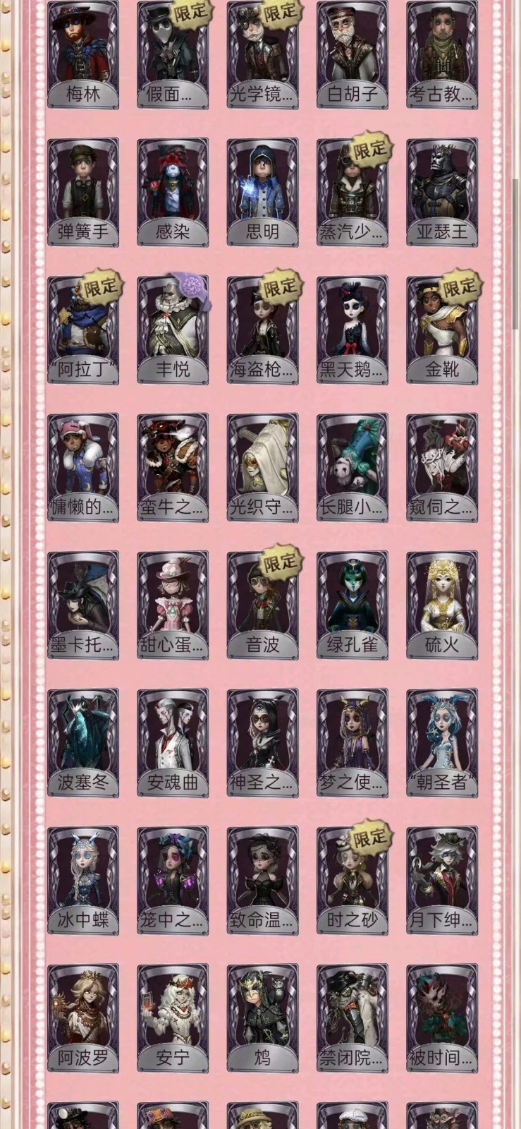 赤色墨水 租号必看,开挂必报警 恶意毁号必报警 报警报警报警报警报警报警报警报警报警报警报警报警报警报警!!!! 1-挂机封号必报警处理 挂机封号损失 查ip 报警处理 禁止使用外挂,此帐号非账号问题不可撤单! 2-官方账号密码直接登陆,禁止游戏内刷喇叭说卖号骗人,抓一次直接报警, 禁止开挂,本账号经过网络财产备案,一直发现直接报警处理不会登陆的租客请下载 taptap 找第五人格下载游戏 3-账号财产价值很高,本店24小时在线,恶意投诉秒顶改密,直接拉黑,永久不让租 4-使用外挂,脚本等一切破坏游戏平衡,在平台提取实名ip(都是vzfb实名消费)直接立案追责,三倍赔偿账号价值 5-本店文明租号,你好我好大家都好。游戏本身就是消遣娱乐的地方,切勿消极对待,切勿以身试法,文明租号,快乐你我他。祝每个租客都有好心情,维护好环境。 6-游戏里任何东西都不要想着去破坏,试图解除二级密码的,一经发现直接拉黑。 7-游戏里涉及到任何钱财账号交易,一律不要相信,天上不会掉馅饼,如有财产损失,与本账号无关,文明租号。M摩涅莫绪涅之梦 金匠 岩鸽 珍奇柜 黄金蛋糕 海神之冕 引魂人 雨燕先生 "温室" 邪眼寄主 B.Duck 耶梦加得 夜来香 忘川渡人 金纹大触 小丑皇 拉塔托斯克 浴火绯花 小人国 小红帽 今夜不再 花序 亚兹拉尔 海盐特调 半精灵骑士 星辰 长夜 欧律狄刻 幽灵帆 死生之谕 奇珍时装 坂本龙司 SKULL B.Duck潮用 冬 丹尼尔狄更斯 C的 星航之旅 “好孩子” 墓志铭 起航日 宿醉 应许之日 白金阿拉丁 缚咒法老 发明家 灰烬狂想 火炮手 再造者 双面盗贼 弧矢星 琼楼遗恨 绿纹大触 白纹大触 斯文加利 稻草人 炽天使 往昔 永生花 传信官 蒸汽朋克 蓝调阿拉丁 限定 限定 梅林 “假面绅士” 光学镜面 白胡子 考古教授 限定 弹簧手 感染 思明 蒸汽少年 亚瑟王 “阿拉丁” 丰悦 海盗枪手 黑天鹅之羽 金靴 情懒的兔先生 蛮牛之力 光织守护 长腿小姐 窥伺之心 限定 墨卡托投影 甜心蛋糕 音波 绿孔雀 硫火 波塞冬 安魂曲 神圣之辉 梦之使者 “朝圣者” 限定 冰中蝶 笼中之蝶 致命温柔 时之砂 月下绅士 阿波罗 安宁 鸩 禁闭院长 被时间遗忘的男孩 鼹鼠先生 雀舌 矿业董事 ACE 狡 罗勒 “王子” 奶酪 动植物学教授 长生 反骨之缚 天使向导 年岁 烟花盖伊 蚕食者 圣洁 异相睡眠 噬恶之渊 华生医生 吟游诗人 9 审判之翎 ”膨化” 善恶的本性 艺术品商人 茶歇小姐 善忘的海马体 疯狂的耿浩 宴会侍女 疯狂的大飞 牛仔 兔脚 限定 童年烙印 克洛维斯 达莉娅 Asst K 玫瑰之下 猎人的箭囊 噬魂 致命的邀请函 魔典 逆转之战 荣光的残像 遗忘之花 进化 馈赠 雷电生成器 转位 "光明” 涅粲 黄玫瑰之 园丁布偶 诅咒黑云 玫瑰手杖 火焰精灵 金翼之球 舞会彩球 针线包 黑胶碟 玫瑰手杖(蓝) 尼古拉斯的遗嘱 斗牛布 不焚之羽 鬼披肩 剪骨钳 许愿瓶 地层石蛋 机关囚笼 小人偶 匣中风云 协律 沙滩镜 介壳虫 卡诺匹斯罐 星象仪 钱袋 毒液笔 鹰羽 海之低语 晴天娃娃 绝影 世界之树的祝福 蝴蝶花 旧日征帆 结冰的齿轮 电掣 爆燃 酩酊 赤色墨水 扑克牌 催眠仪 [头像]开服狂欢[头像] 动物世界 [头像]富江 [头像]深渊的... [动态头像] 夜... 4A [头像]昆虫学.. [头像]勘探员... [头像] “噩梦... [动态头像]杰克[头像]深渊的... [头像]摄影师... [头像]蜘蛛-墨.. [头像]深渊的... [头像]咒术师-.... [头像]渔女-审... [头像] "逃脱.. 劳动节-2018 浓情棕意 动物世界 预言帝 开学文具 游乐场 [动态头像框] ... 恭贺新春 宫灯花下吃元宵 复活节彩蛋 血玉树 蓝色妖姬 [动态头像框] .. 摩涅莫绪涅之梦[动态头像框] ... [大厅]魅影古堡 电藏乐曲 [家具]盔甲塑像 [家具]苍蓝烛台 希世乐曲 忘川渡人 [具]最后一