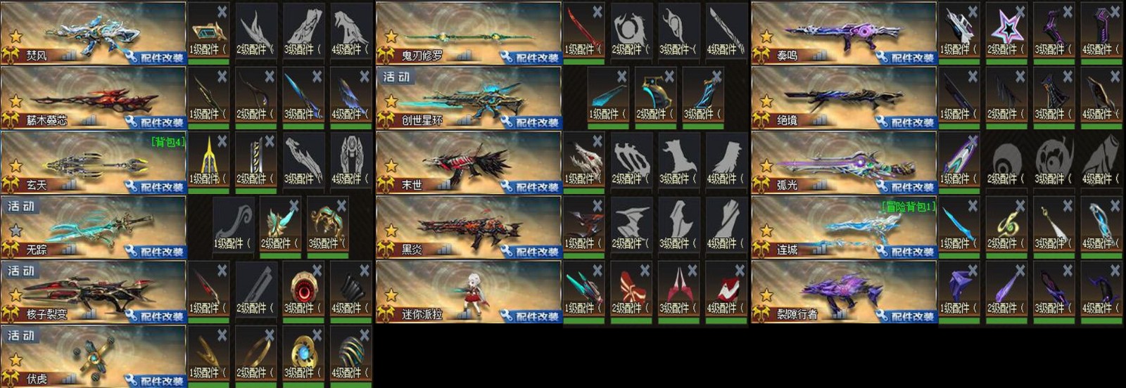 配件✨破魂丨岚翼丨美杜莎之吻丨赤血之源丨焚风丨鬼刃修罗丨奏鸣丨藤木蔓芯丨创世星环丨绝境丨玄天丨末世丨弧光丨无踪 x2丨黑炎丨连城丨核子裂变丨迷你派拉丨裂隙行者丨伏虎丨灵狩丨