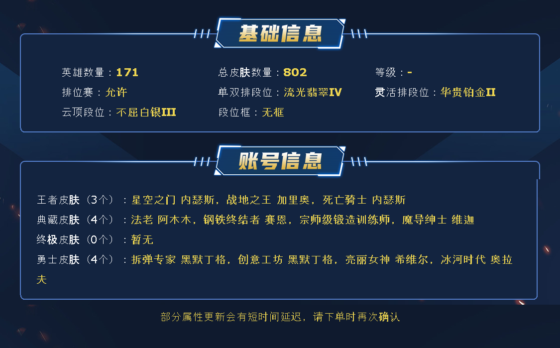 首页 > 英雄联盟 > /联盟五区 /无畏先锋 > 商品编号:217632