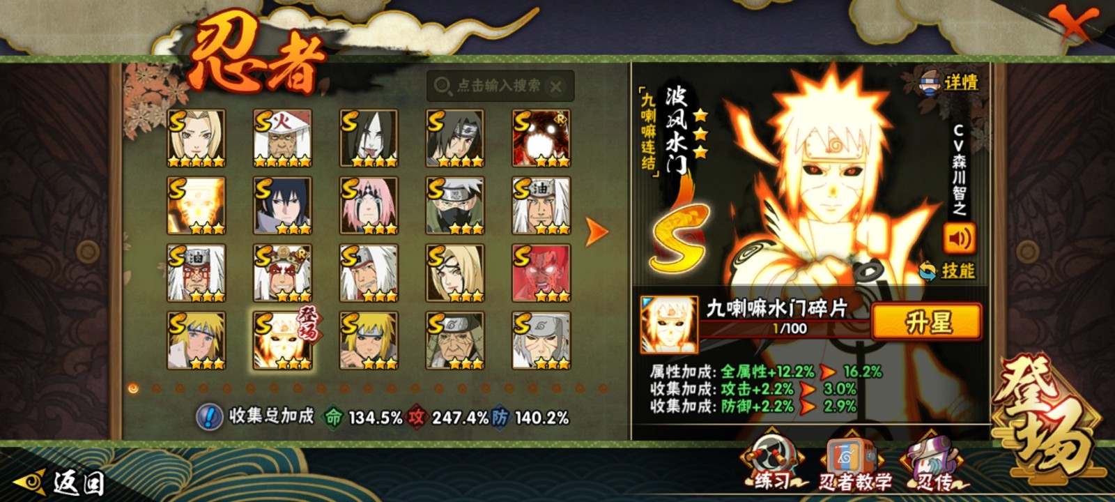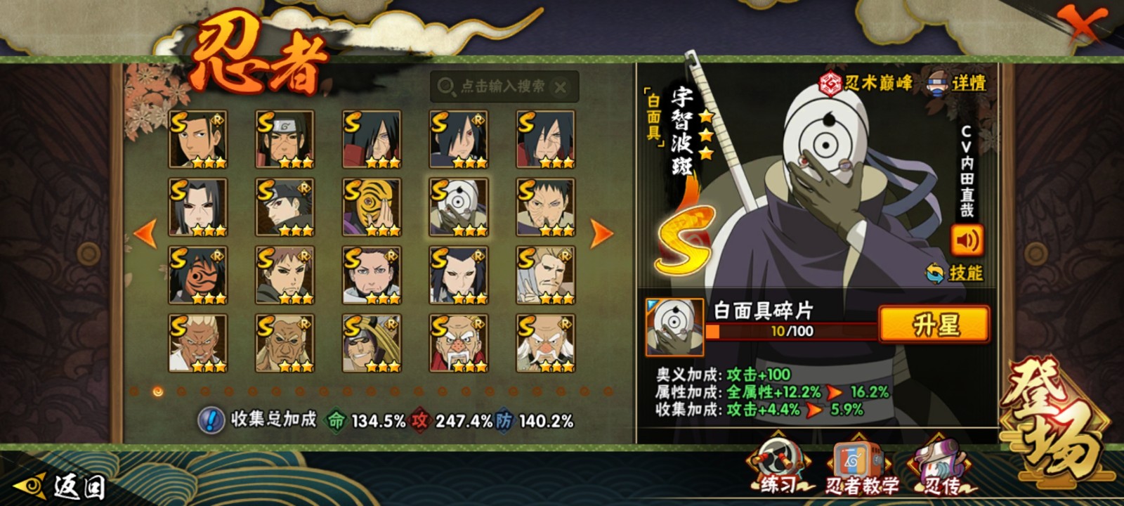 九喇叭水门+秽土再不斩+2134万V750区+白面具/须佐卡卡西/暴怒鸣人