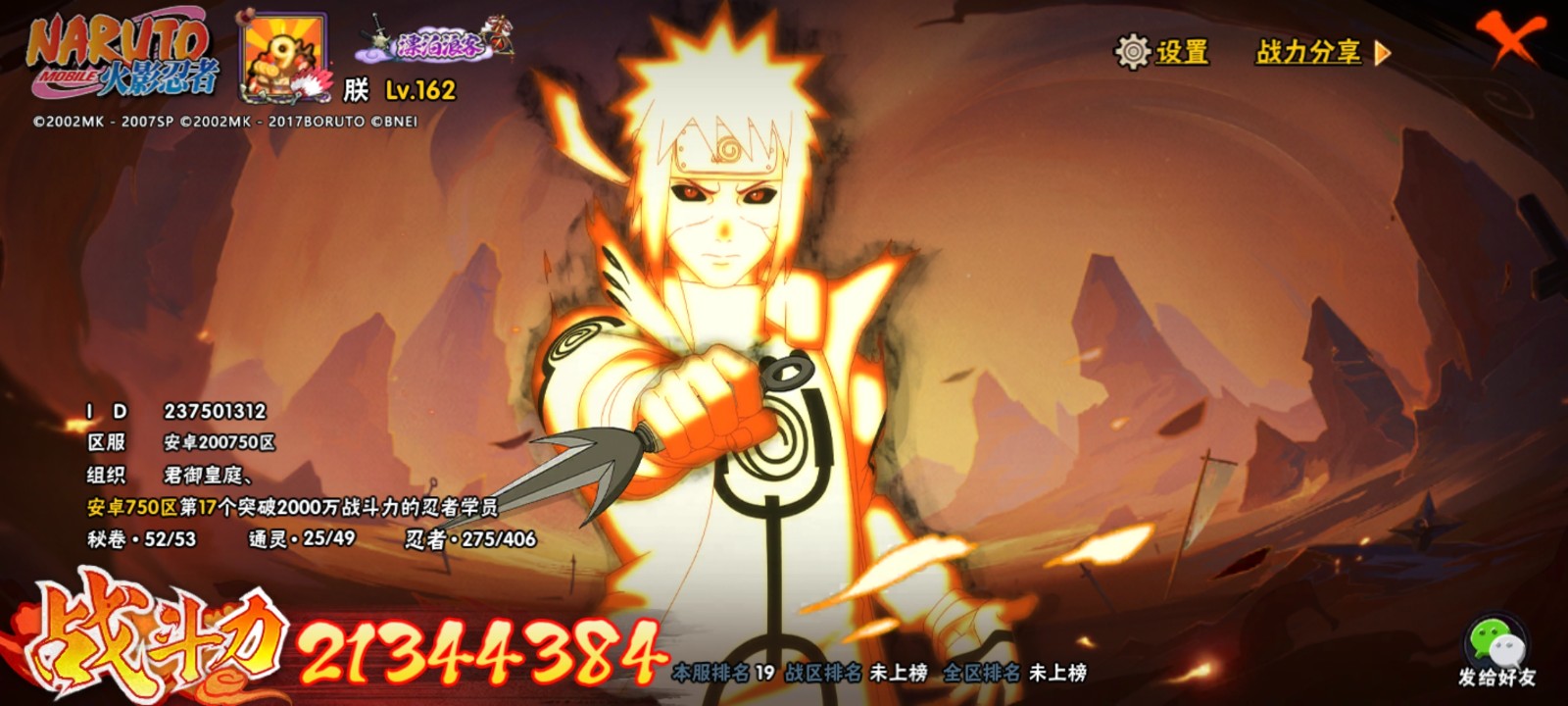 【安卓】 机械鸣人❤️九喇叭水门❤️47S❤️2150万❤️V750区❤️白面具/须佐卡卡西/暴怒鸣人