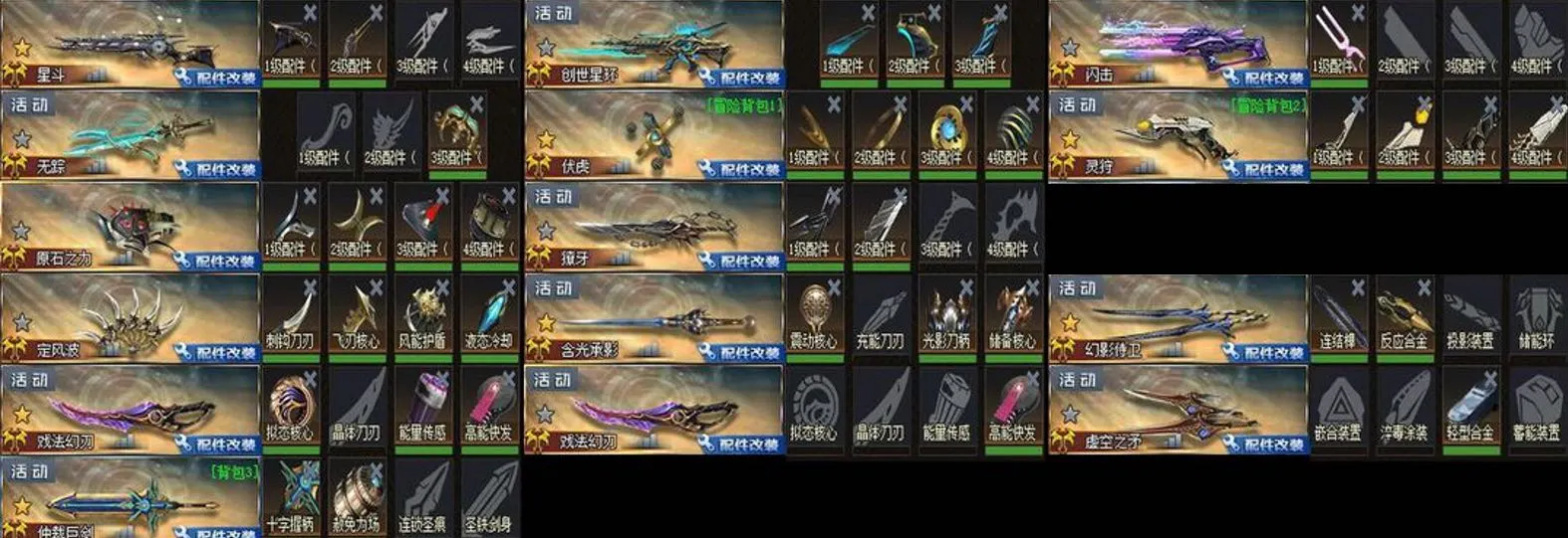 配件✨归墟血契丨星斗丨创世星环丨闪击丨无踪丨终末之弩丨伏虎丨灵狩丨原石之力 x2丨獠牙丨定风波丨含光承影丨淘金热丨幻影侍卫丨戏法幻刃 x2丨虚空连弩丨虚空之矛丨仲裁巨剑丨