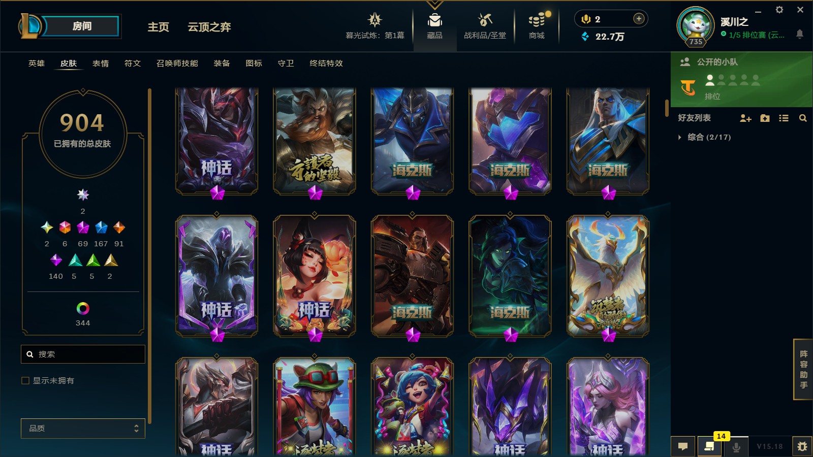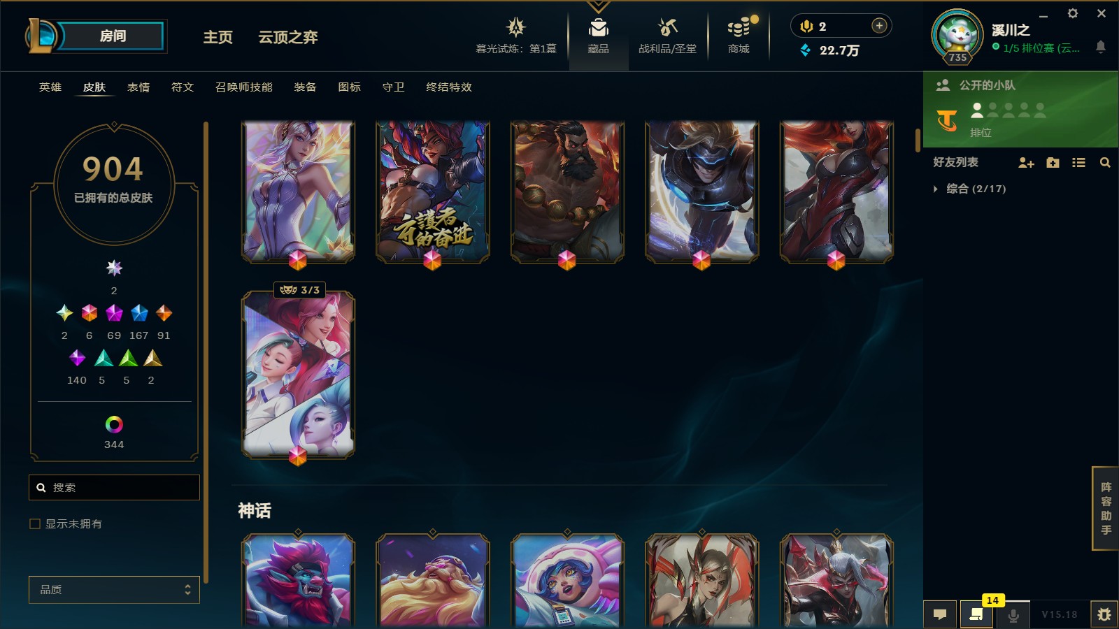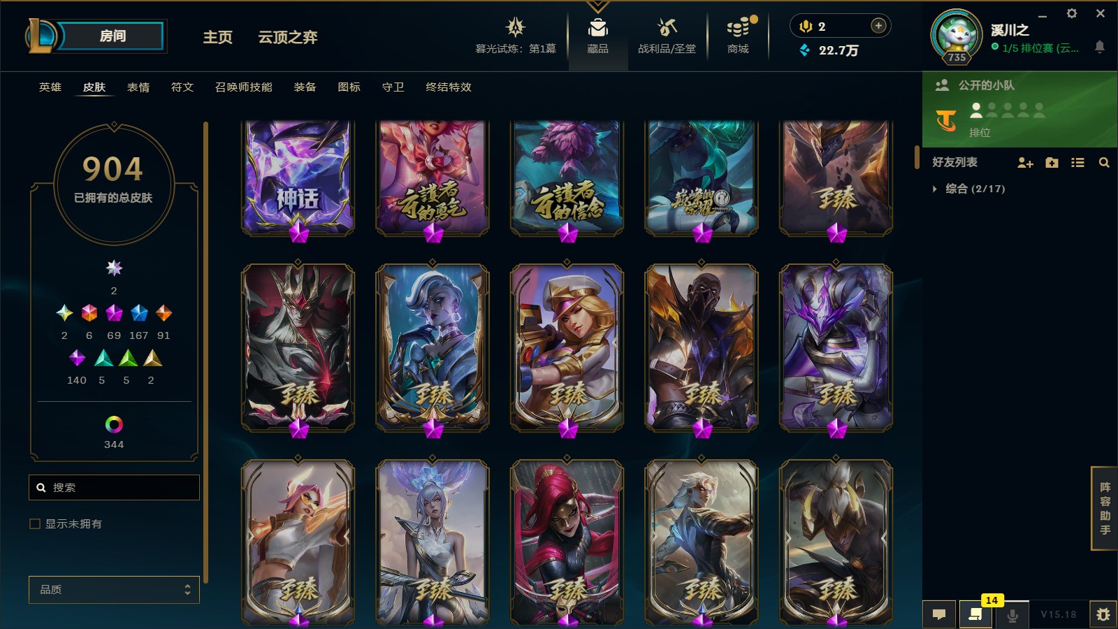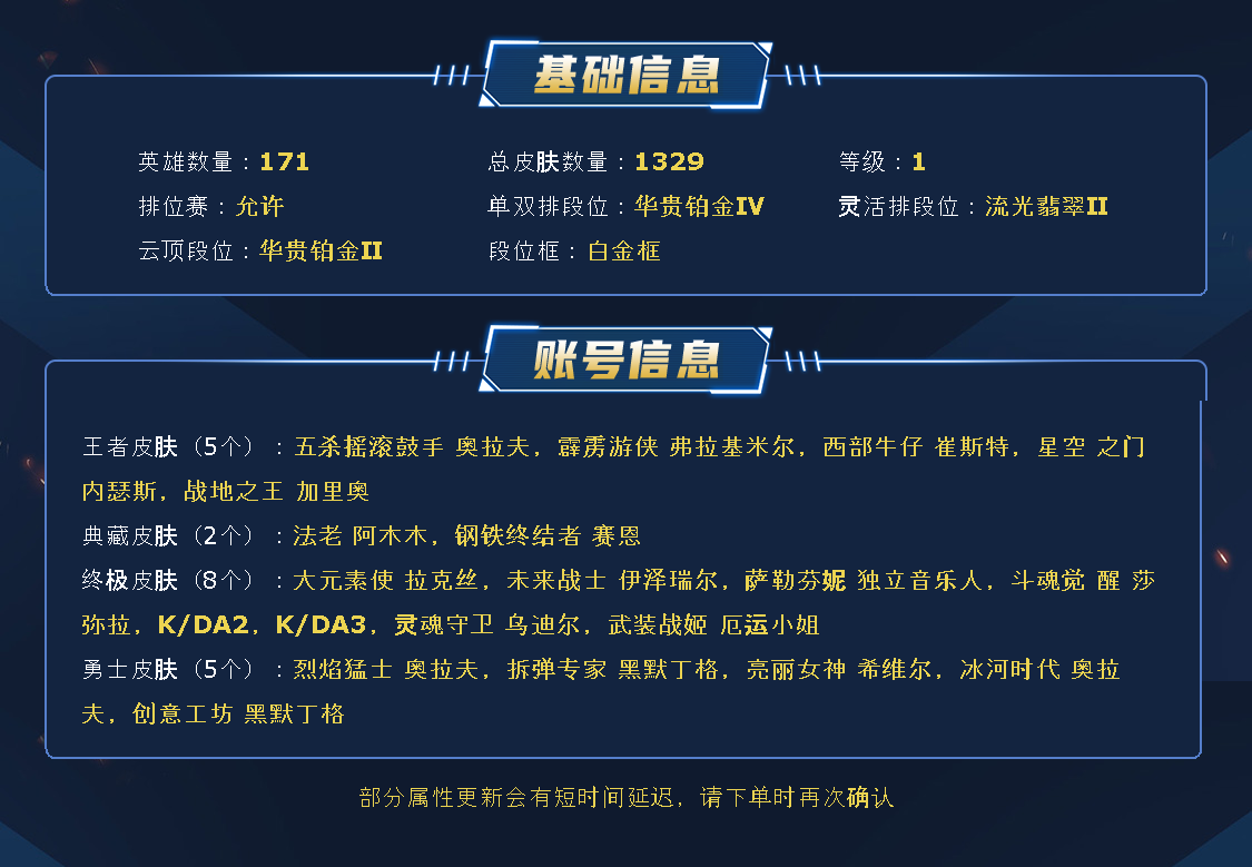1321皮丨70神话丨5氪金皮 圣堂铁男 腕豪丨神话幻想狐狸 诺手 盖伦丨殿堂狐狸卡莎丨云顶神话发条