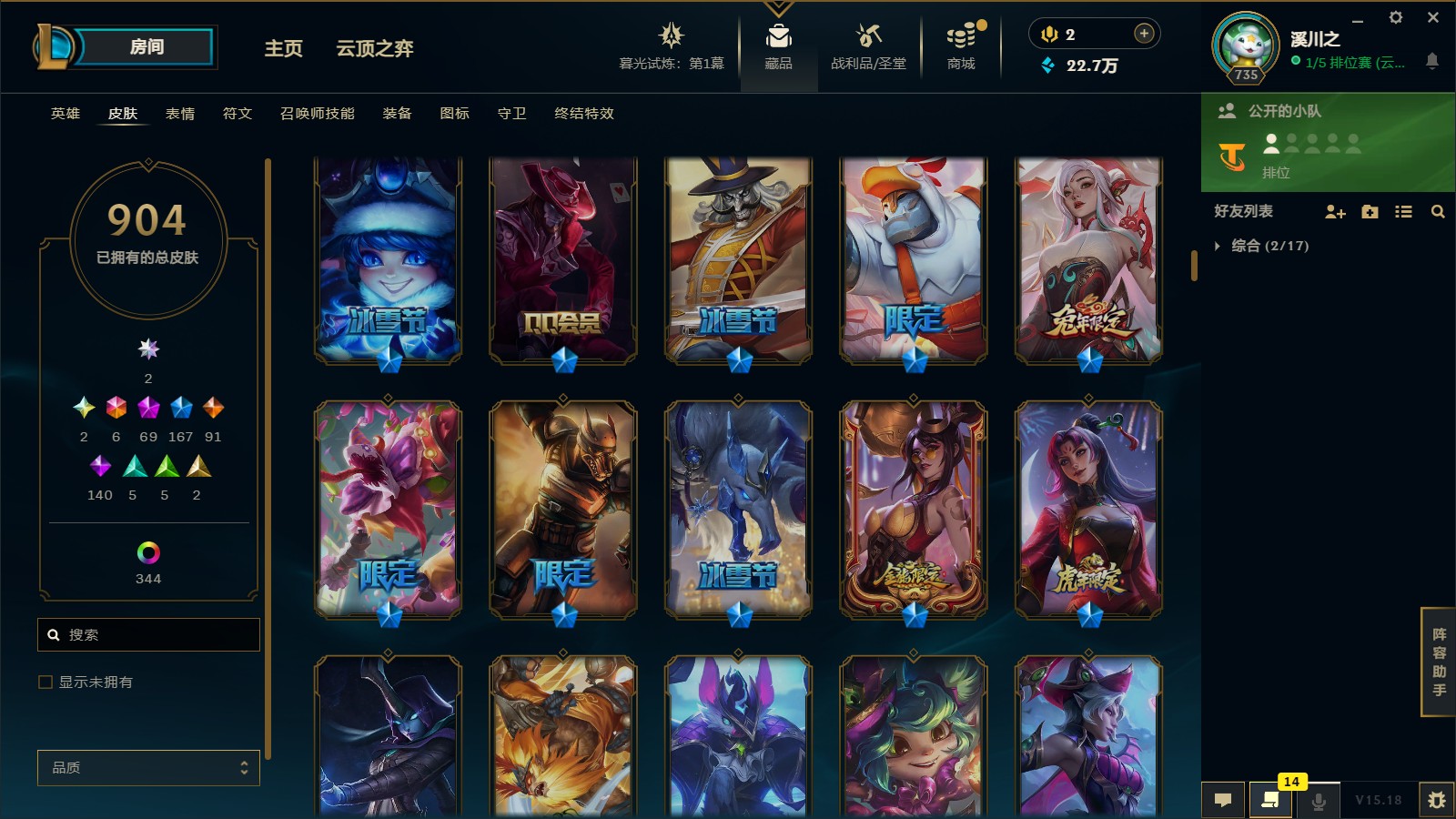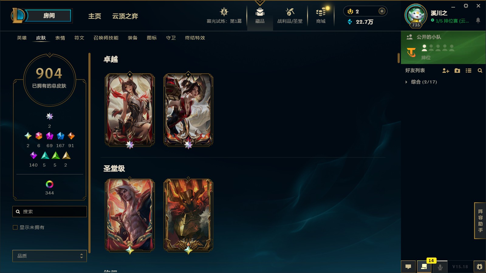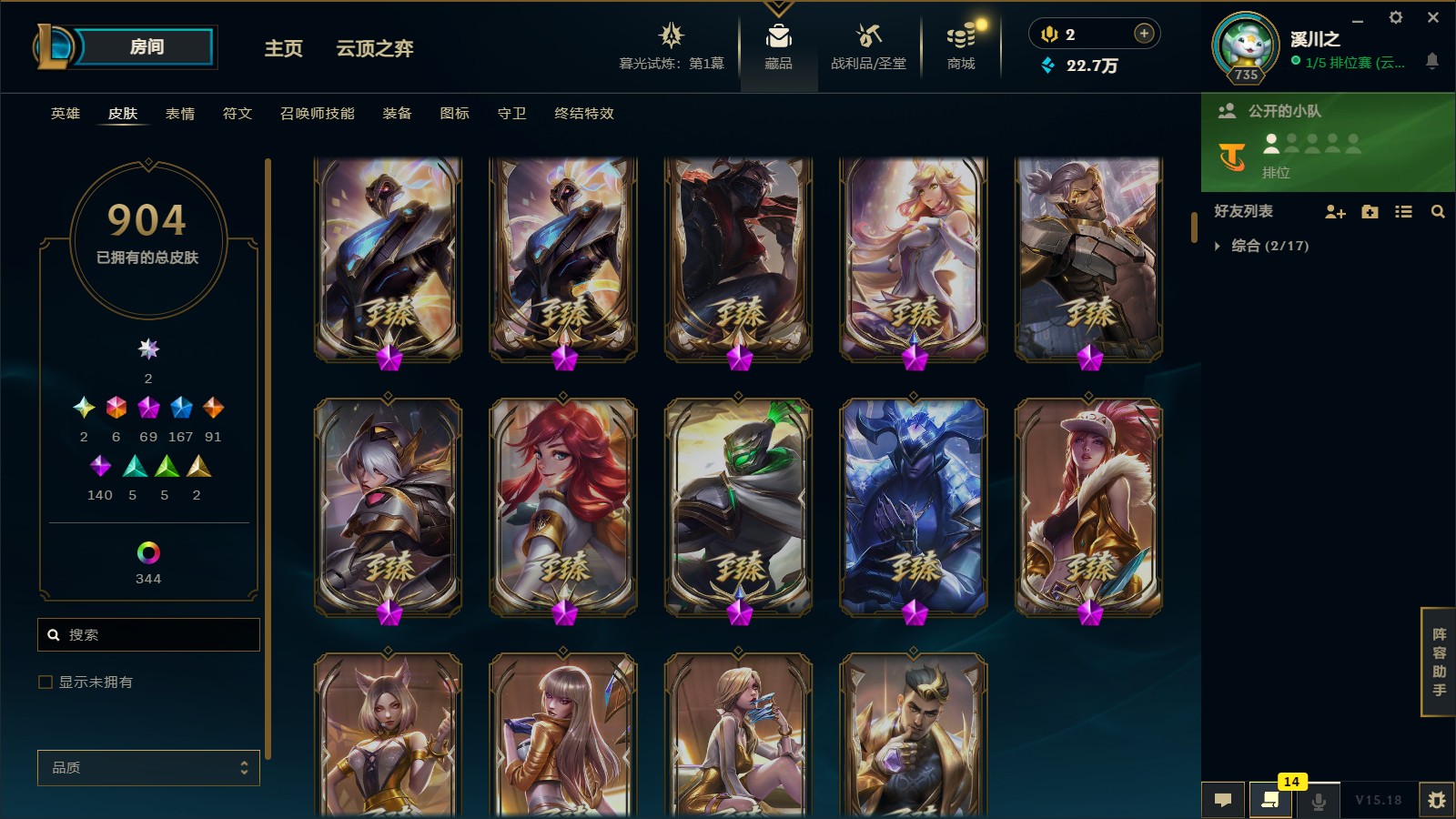 1321皮丨70神话丨5氪金皮 圣堂铁男 腕豪丨神话幻想狐狸 诺手 盖伦丨殿堂狐狸卡莎丨云顶神话发条
