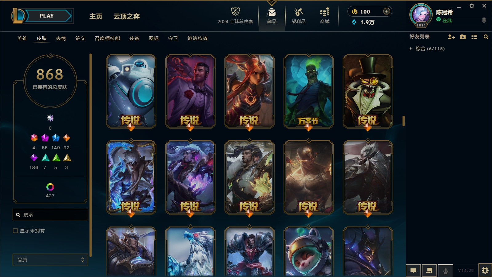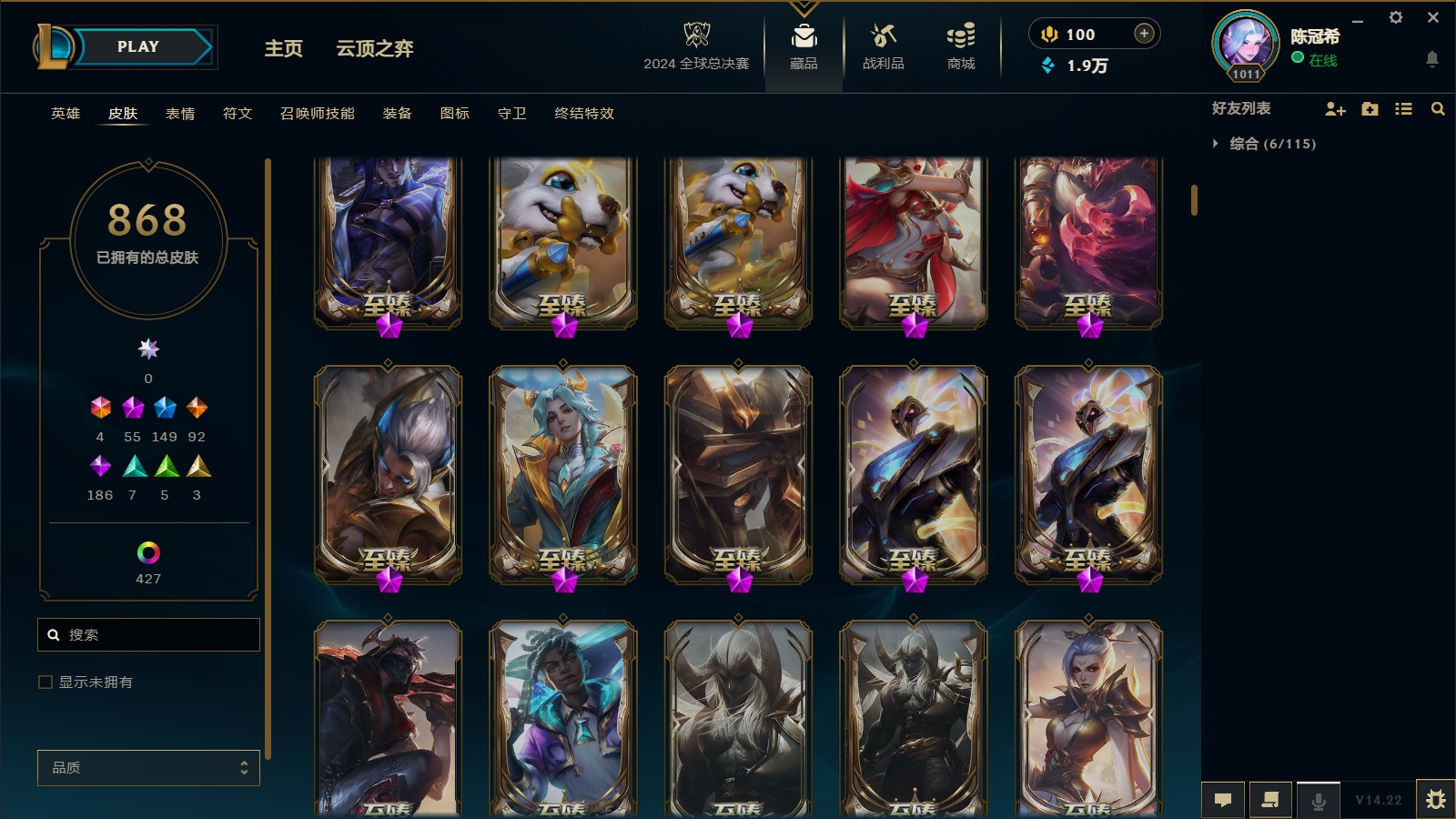 1700皮肤〓56至臻海克斯〓摄魂恐惧〓玉剑男女刀〓鼠年武器瑟提〓神龙亚索黎明永恩〓西部魔影奥巴马
