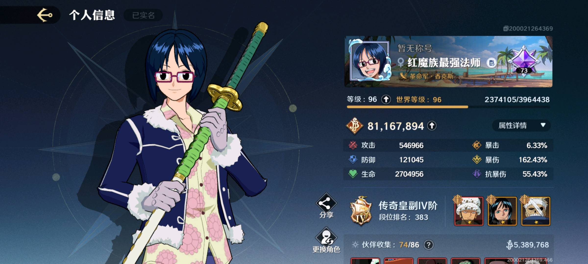 【安卓】 航海王·壮志雄心 安卓手Q2区 角色还行战力还看的过去可打排位,不允许发送任何有关买卖交易的言论