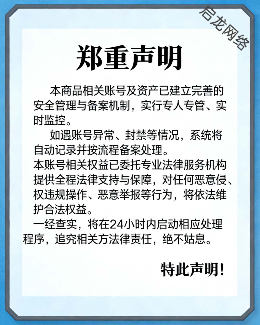 5️⃣该商品已在江苏省南京市玄武区公安局及法院注册虚拟财务私人管理,若出现封号情况,将在8小时自动备案,并且旗下多个账号已批量与北京大成(南宁)律师事务所律师达成协议,一经发现,将于24小时内严肃处理。