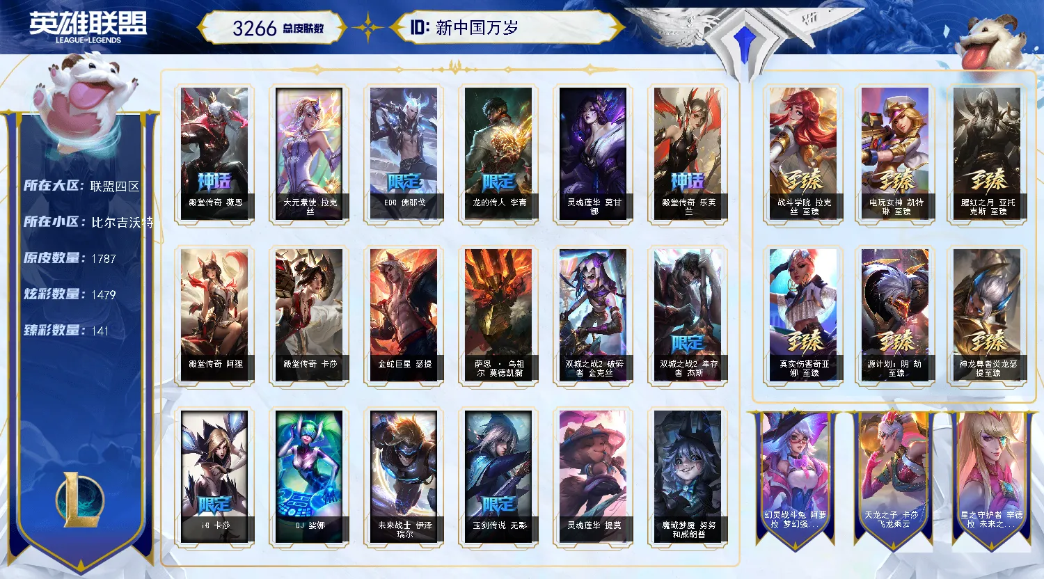 超级号1785原皮-晴天-四圣堂-清空商城-联盟四大区-比尔吉沃特-翡翠-云顶20神话-8色龙虾!