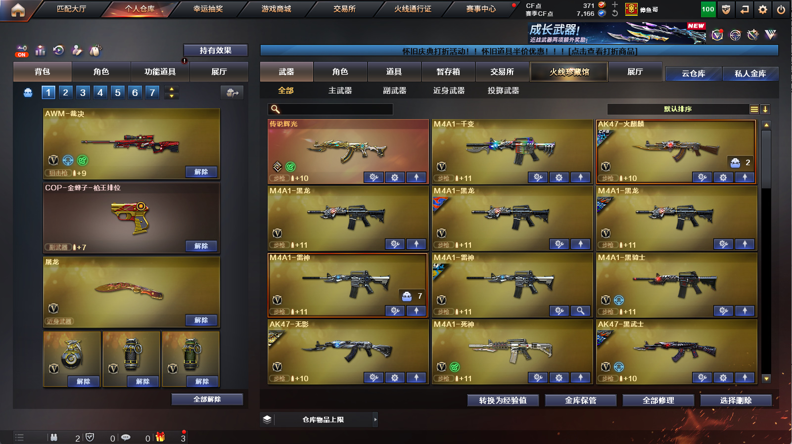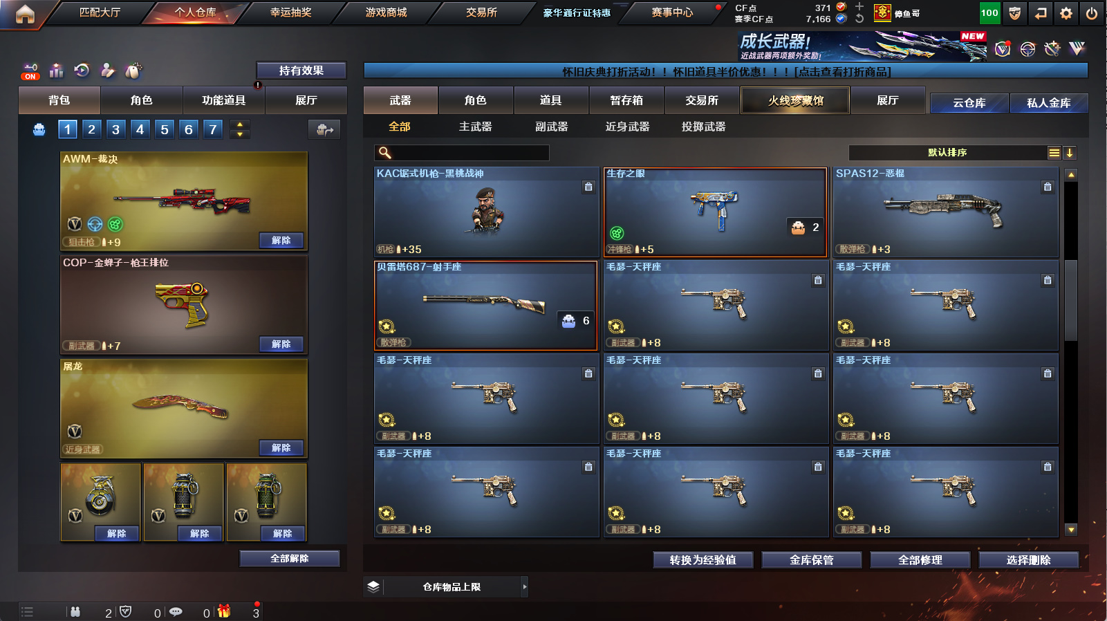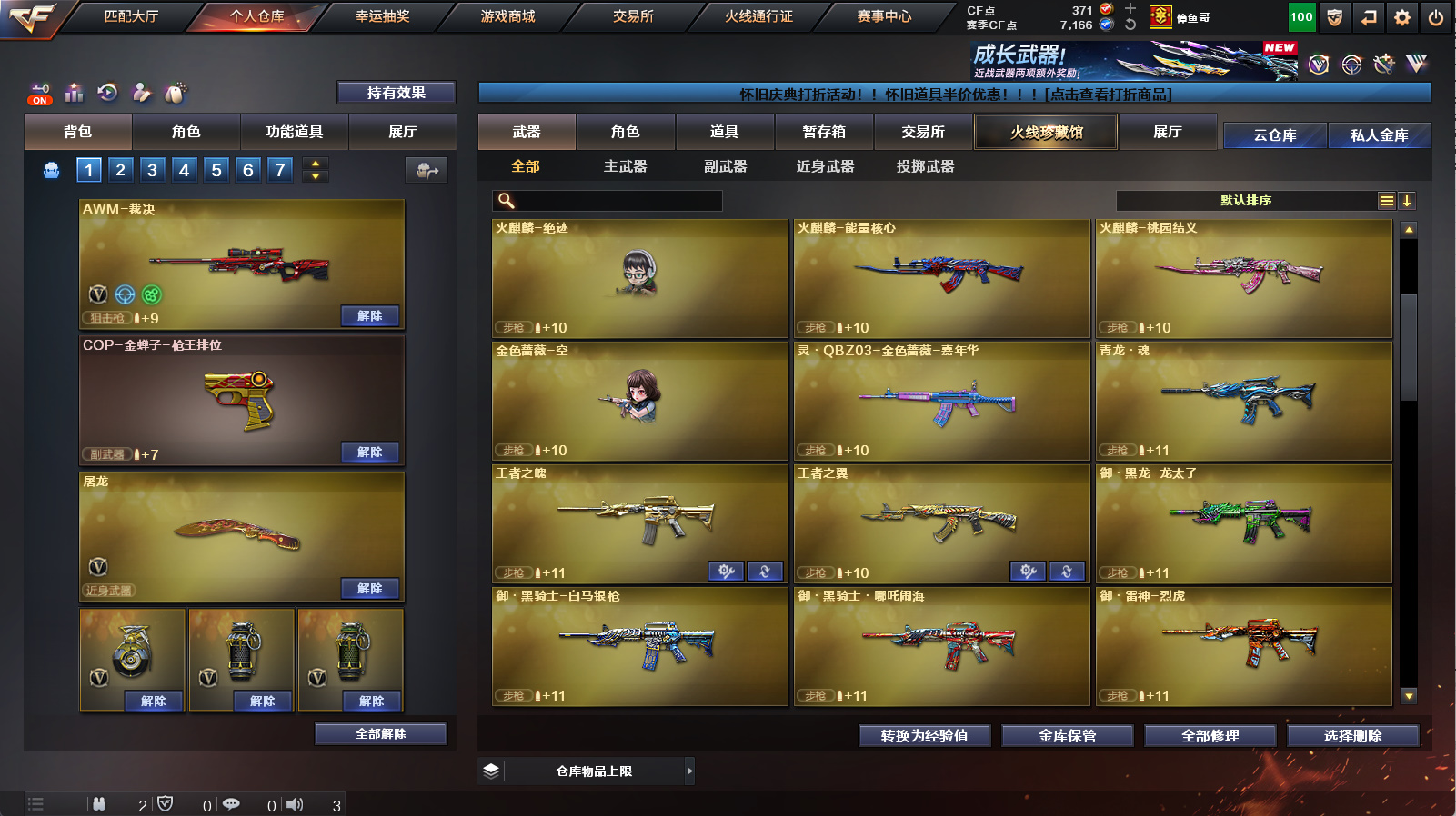 《传说辉光》《m200幻神》《98k星神+星神音效卡》《裁决》《王者星神》《1911大黄蜂》《炽芒碟刃》《白虎》《朱雀》《qbz天罚》《王者冰魄》《qbz金色蔷薇》《烈火》《毁灭》《火麒麟》《雷神》《黑骑士》《6烈》《牛牛ak》《雷神精英刀锋 火麒麟绝迹 金色蔷薇空》《乔伊教练 4防王者葵貂蝉 超能女侍觉 女主播》《黑骑士音效卡 火麒麟音效卡 白虎音效卡 毁灭音效卡 雷神音效卡》《白虎霓虹机甲 毁灭cfs2018 火麒麟cfs2018 毁灭冠军之怒 火麒麟ag战队皮 雷神荣耀之魄》a背包套装扩展券《永久ac 永久工具钳 永久手雷包》