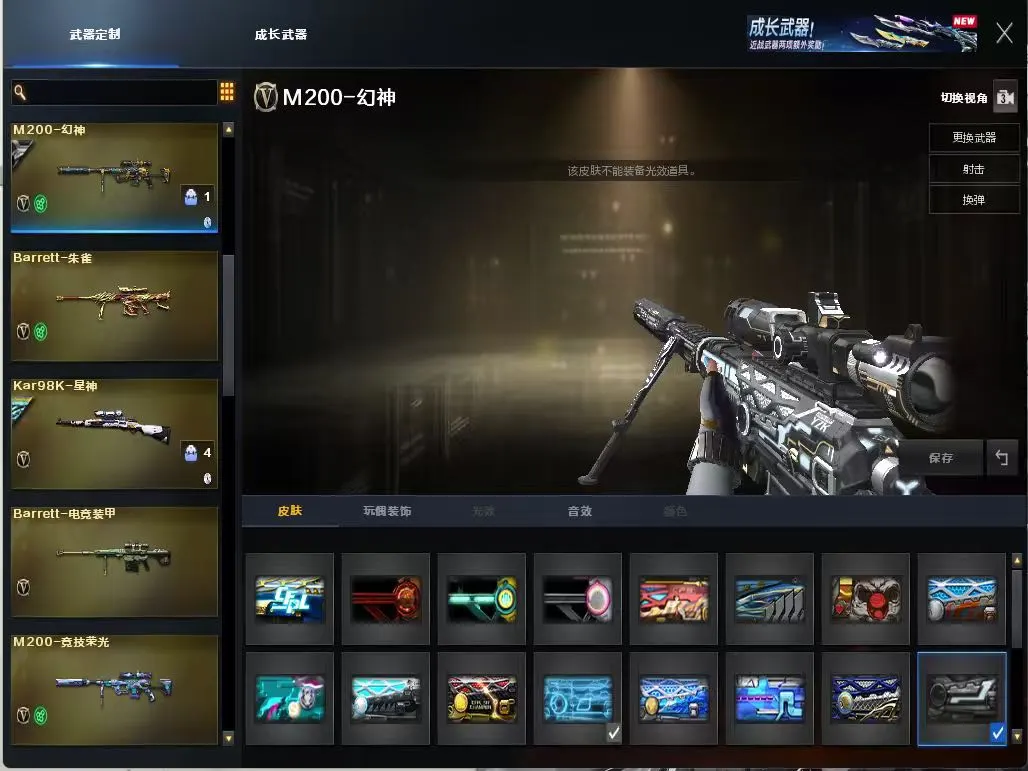 【热门音效卡】:M200-幻神音效卡/Kar98K-星神音效卡/AWM-裁决音效卡/Scar Light-白虎音效卡/Barrett-毁灭音效卡/M4A1-黑骑士音效卡