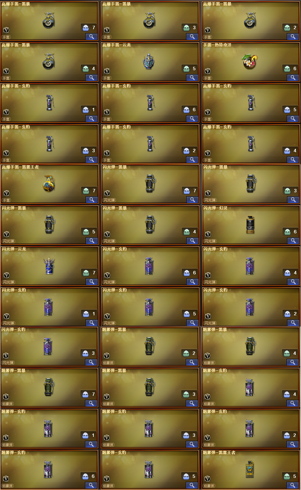 投掷套装:雷暴套X5、云龙套、玄豹套X6、手雷热带奇洋、雷霆王者套