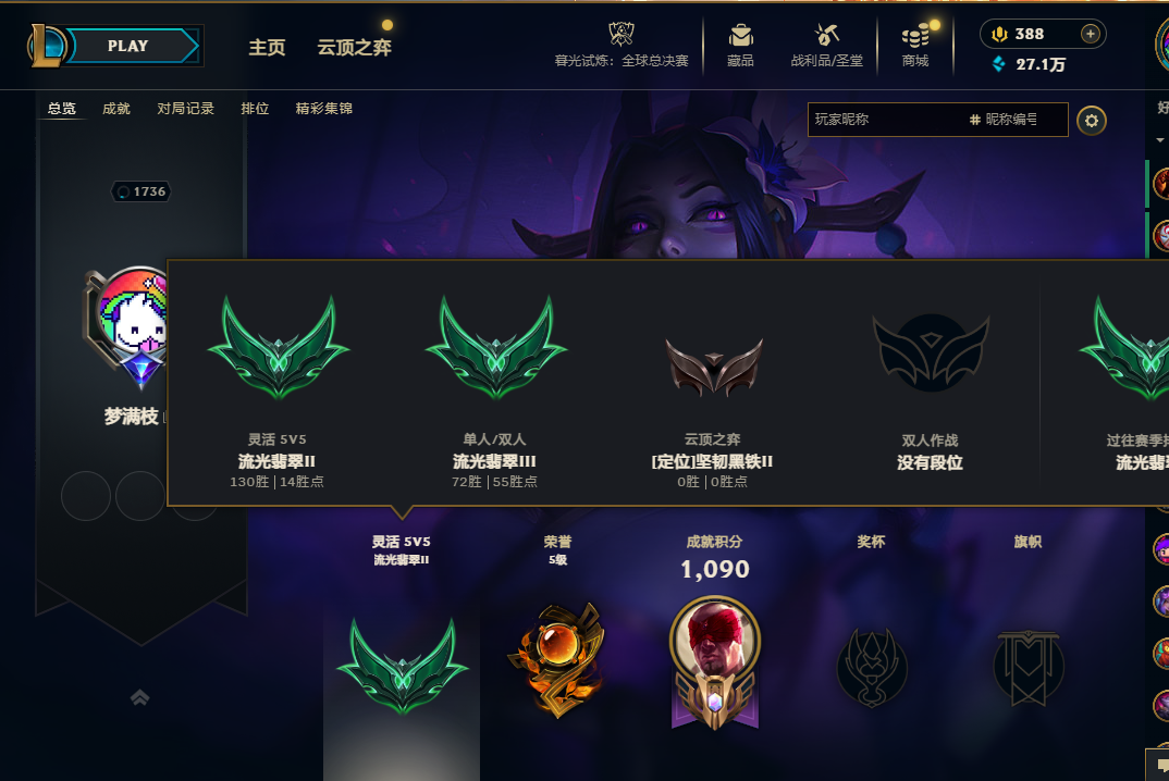 - 云顶段位: 坚韧黑铁Ⅱ