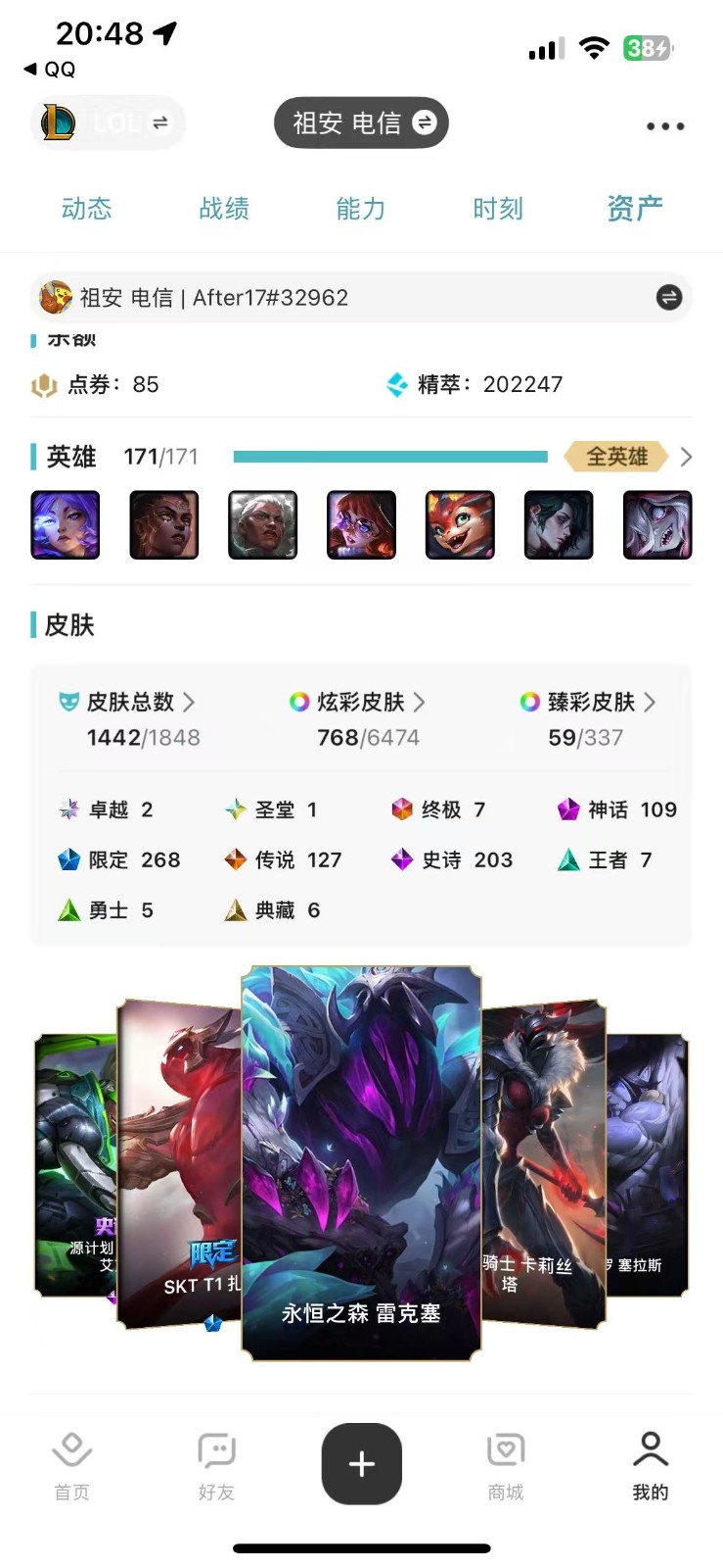 1500/80臻彩♥️名人堂卡莎阿狸圣堂莫甘娜♥️云顶27神话至臻神龙亚索鲨鱼贝蕾亚水云天池