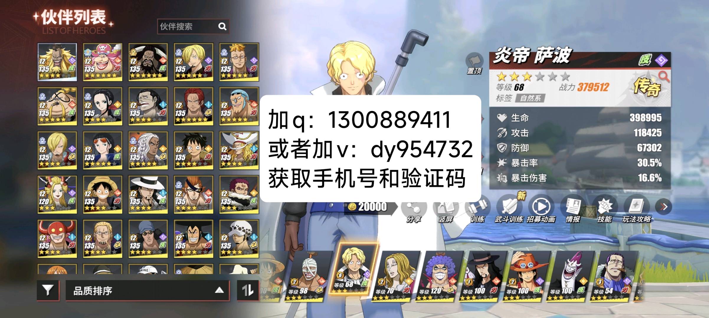 官服♥官服♥炎帝萨博♥和之国霍金斯♥白衣路奇♥黑色玛利亚♥鬼岛路飞♥新老沙♥蛇人♥青白♥青雷♥金狮子♥魔山♥凯多♥烬♥明哥♥3个98友情♥山治礼服皮肤♥禁止使用金果和钻石,恶意毁号必拉黑且投诉♥验证码界面右下角切换密码登录