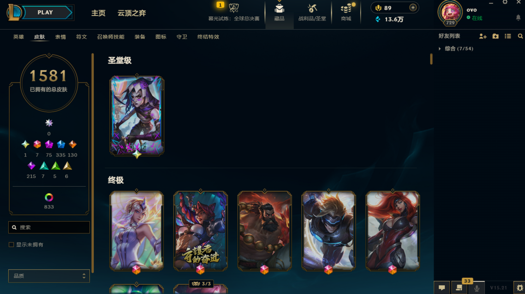 双城金克丝 冰原酒桶 龙虾白炫彩 神话李青艾克 安妮梦游仙境 全套穿星 全套双城 冰原女警 335限定 75神话 全终极皮肤 云顶小小龙虾 kda卡莎 27神话5棋盘!