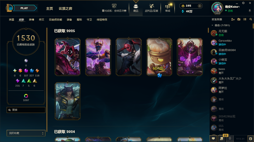 满英雄|2658皮肤|原皮1530+|终极6|传说118|史诗320|限定327|可排位|