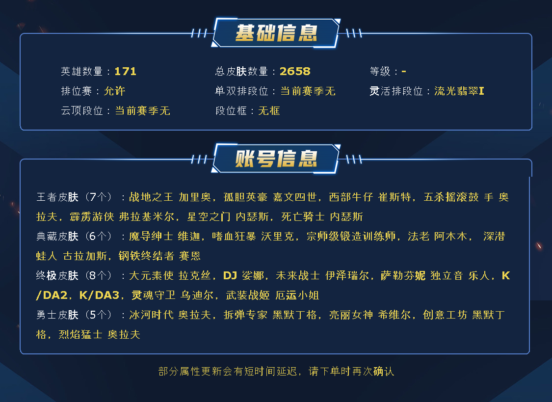 满英雄|2658皮肤原皮1540+|可排位| 禁止开挂 禁止送人头骂人挂机