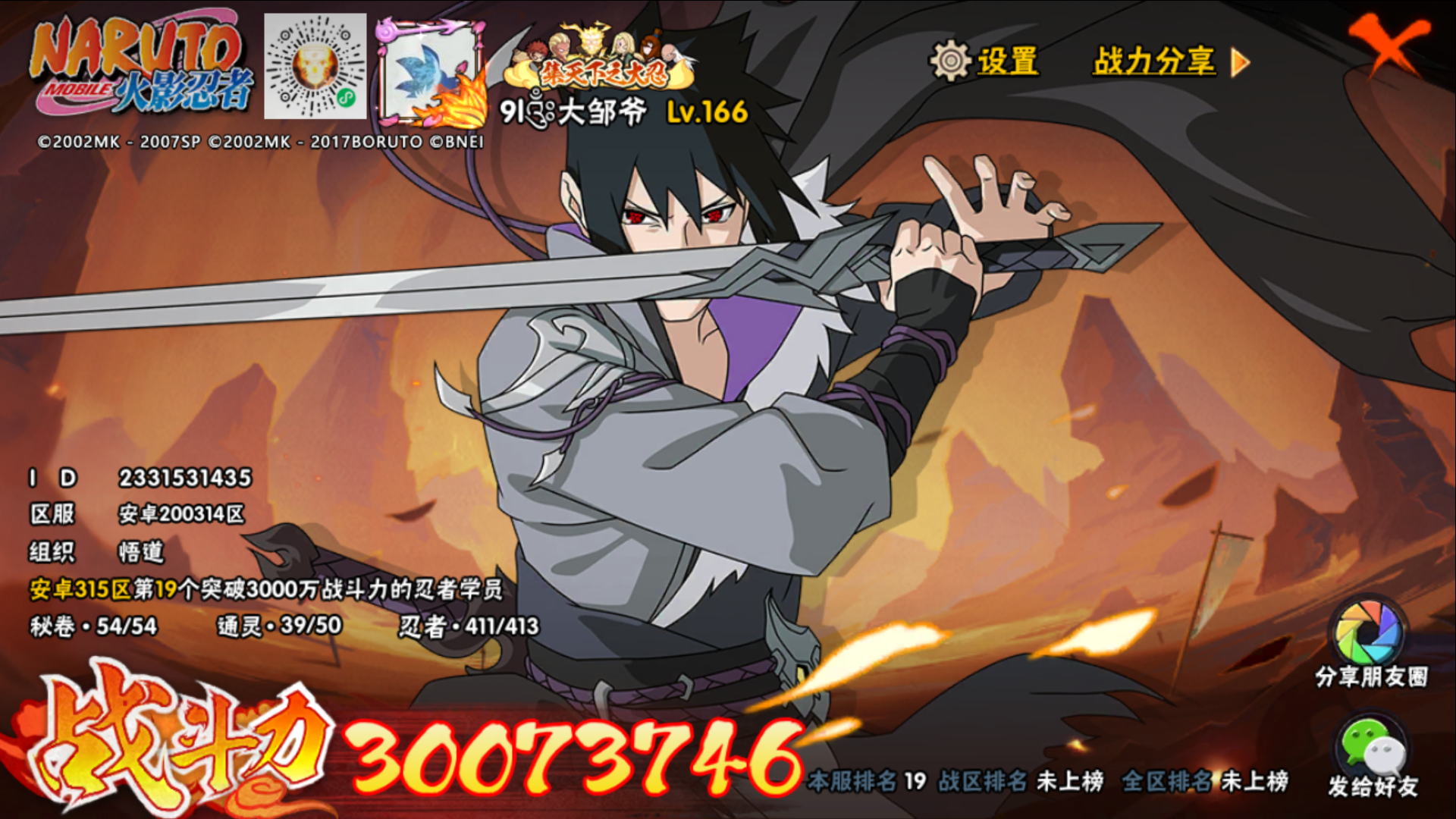 【安卓】 V区 411忍全忍者 54S 全通灵 侠隐佐助 全直购 全氪金 全时装
