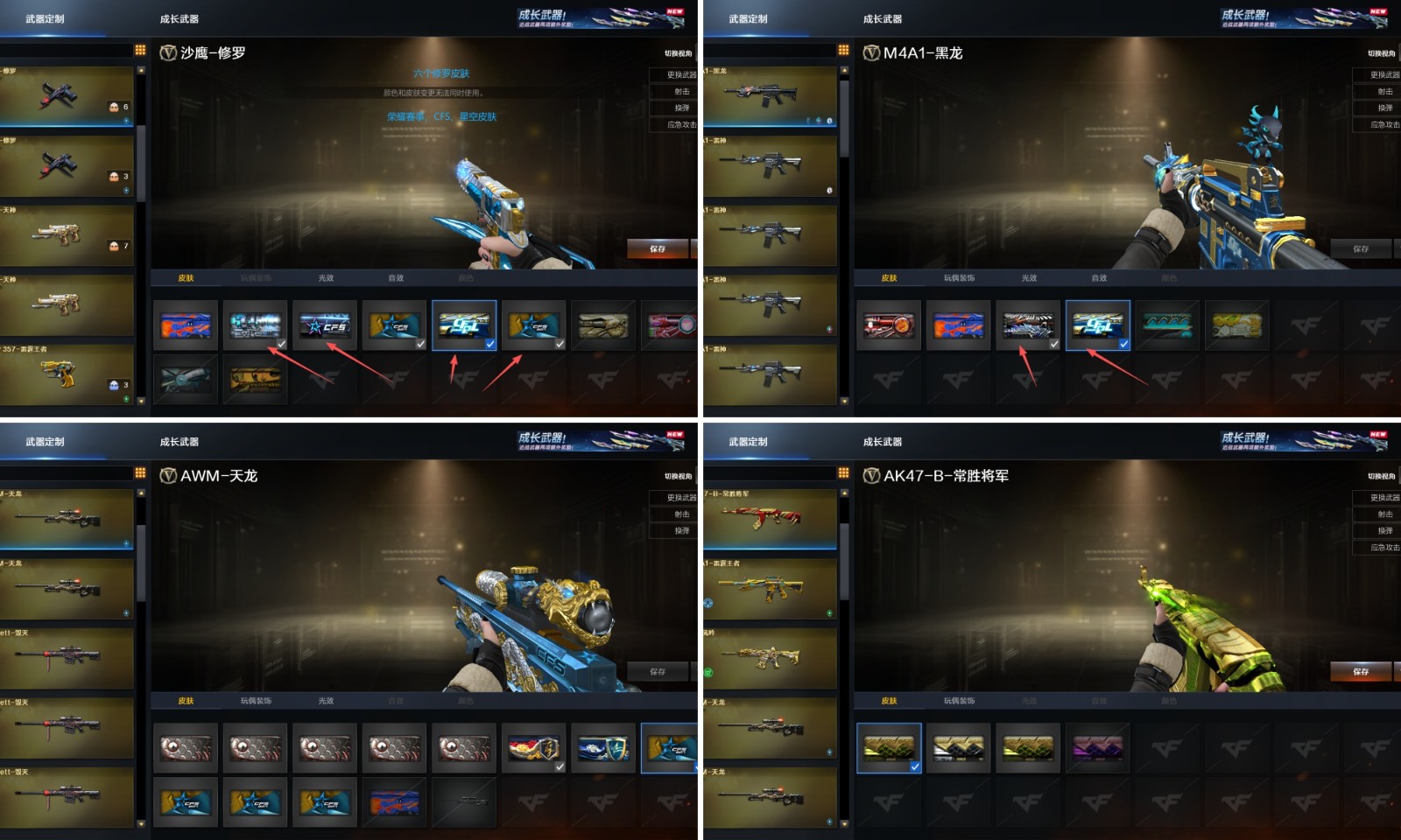 【重要武器皮肤】幻神-冠军之幻/星神-枪娘默 皮肤/星神-璀璨皮肤/毁灭-冠军之怒/毁灭-CFS2020/毁灭-BEAN-2020MVP/毁灭-星空/毁灭-暗月/毁灭-魔灵皮肤/毁灭-青帝皮肤/巴雷特SV皮肤/极光-能量核心/AWM-天龙-传奇70KG/AWM-天龙-传奇白鲨/天龙-CFSTAR/天龙-秘银/裁决-运输船 皮肤/AK47-火麒麟-传奇EVEN/火麒麟-AG战队皮肤/火麒麟-CFSTAR/火麒麟-AG/火麒麟-华夏之心/火麒麟-平天大圣/火麒麟-枪娘凯特琳/火麒麟-百城/火麒麟-冠军之心/无影-暗月/无影-能量核心/无影耀金皮肤/AK47-B-常胜将军-刘备/AK47-B-常胜将军-孙权/AK-47-雷神/M4A1-千变-孔明皮肤/雷神-源计划2.0专属 皮肤/雷神-冠军之魄/雷神-宠儿-2019MVP/雷神-传奇N9/雷神-荣耀之魄/雷神-虎将/雷神-暗月/雷神-机甲刑天皮肤/雷神-能量核心/雷神-斗鱼/黑骑士-AG-S4冠军典藏/黑骑士-CFS2021/黑骑士-暗月/黑龙-冠军之武/黑龙-暗月/黑龙-能量核心/M4A1-黑龙-361/死神-秘银/白虎-AG-CFPLS20冠军/天启-暗月/战神-流金岁月皮肤/战神-紫绶金章皮肤/战神-粉色甜心皮肤/修罗-冠军之魂/修罗-星空/修罗-CFSTAR/修罗-能量核心/天神-暗月/屠龙-惊鸿 皮肤/屠龙-荣耀世冠AG/屠龙-荣耀之锋/擎天-冠军之击/龙啸-冠军之啸