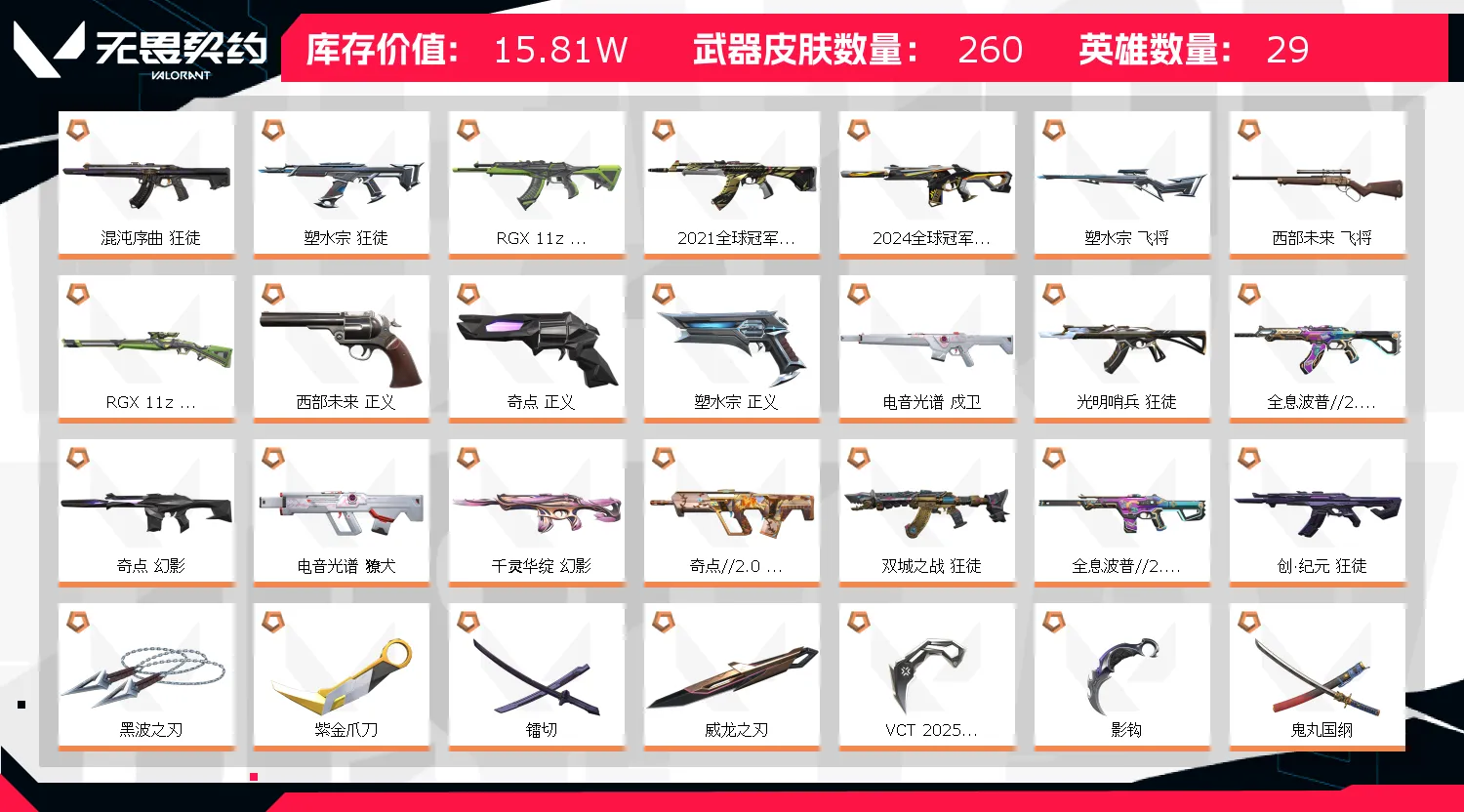 - 武器皮肤数量: 260