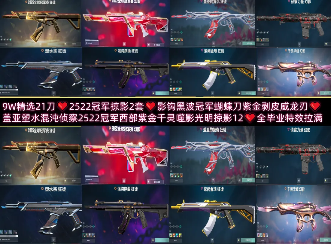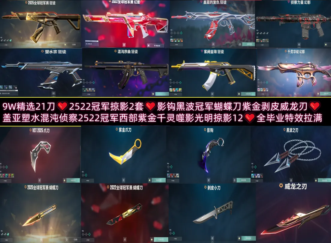 9W精选21刀❤️2522冠军掠影2套❤️影钩黑波冠军蝴蝶刀紫金剥皮威龙刃❤️