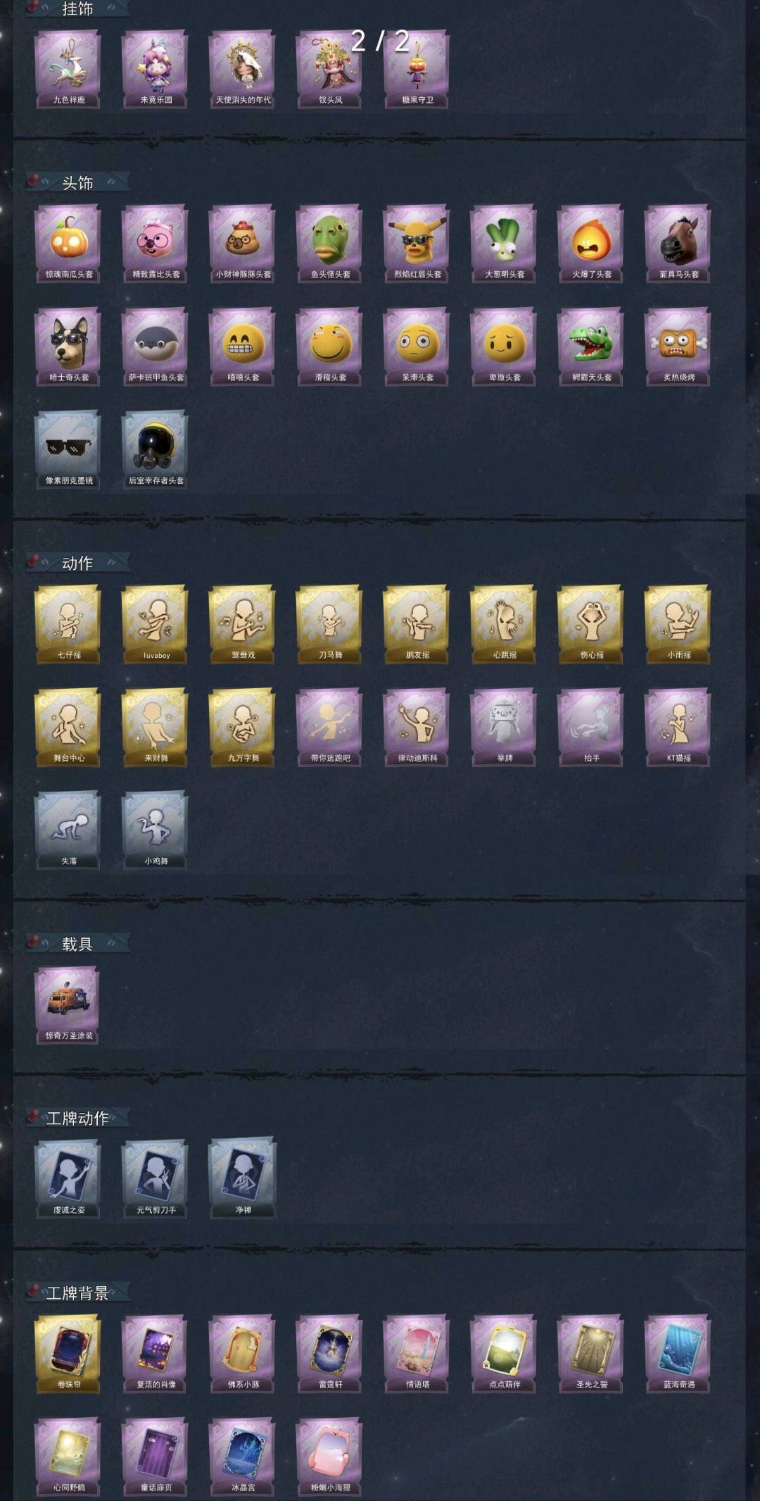 【头饰】惊魂南瓜头套、精致露比头套、小财神豚豚头套、鱼头怪头套、烈焰红唇头套、大葱明头套、火爆了头套、面具马头套、哈士奇头套、萨卡班甲鱼头套、嘻嘻头套、滑稽头套、呆滞头套、卑微头套、鳄霸天头套、炙热烧烤、像素朋克墨镜、后室幸存者头套