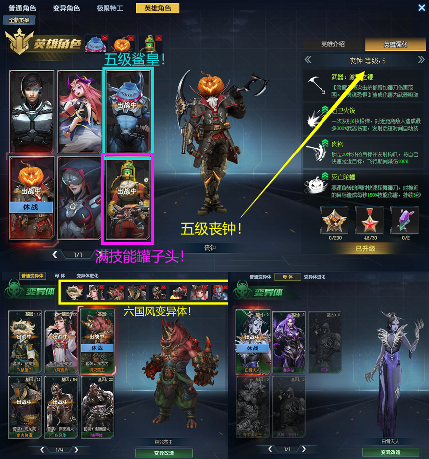 满级丧钟!满级鲨皇!满技能罐子头!鲲仑公主!