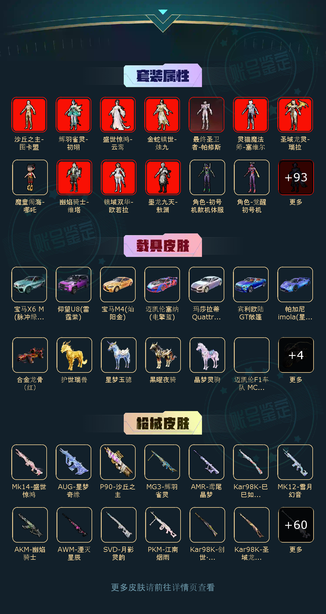本游戏账号:不朽星钻Ⅳ段位,特效枪数量13个,粉装数量57套,载具数量12个,优质装备有: AKM-梦之光华, AKM-甜心宝贝, M416-五爪金龙, M416-暖熊萌萌, AWM-花间之火, SLR-暗夜玫瑰, 套装-极限特训, 套装-数码大师, 套装-粉色回忆, 套装-怪诞乔克, 套装-甜心巧克力, 套装-宝贝奶油派, 套装-天使彩虹糖, 套装-梦幻火箭, 套装-精灵迷巫, 套装-星之信仰, 童趣迷兔降落伞, 天之羽翼降落伞, 齐天大圣降落伞, 合金龙骨(绿), 兰博基尼Aventador SVJ(炫光金), 梦幻火箭头盔(3级), 甜心宝贝头盔(3级)等,供您畅选,感受良好游戏体验!