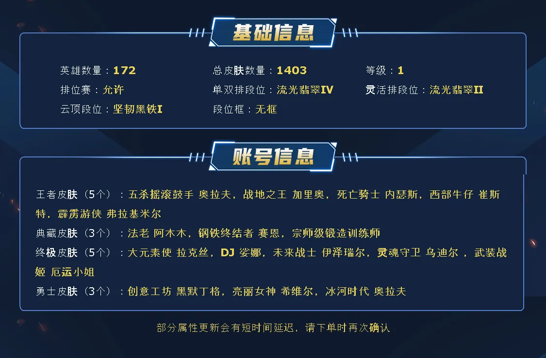 ~~喜欢记得收藏~~可排位~~1395皮全英雄~~租之前尽量查一下游戏ID,确保段位是您需要的,避免浪费您的时间~~请勿挂机逃跑故意送人头,谢谢合作,谢谢~~