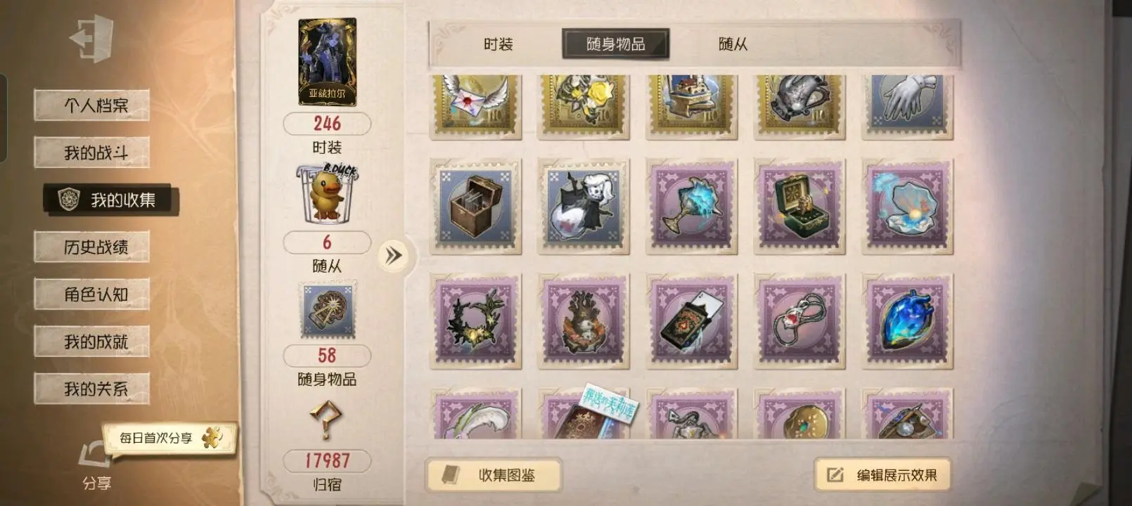 - 随身物品数量: 58