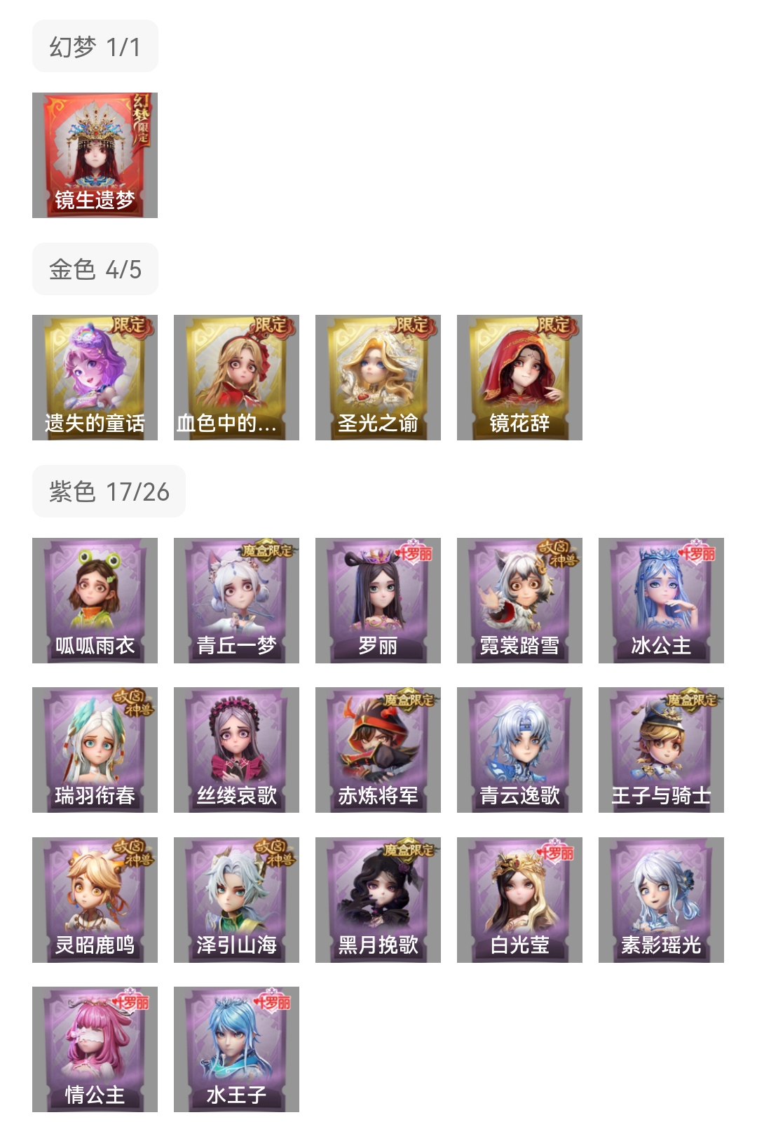 【全平台】 【1红4金17紫】镜生遗梦、薇薇安圣光、童话、玛丽、镜花辞、赤炼、青丘