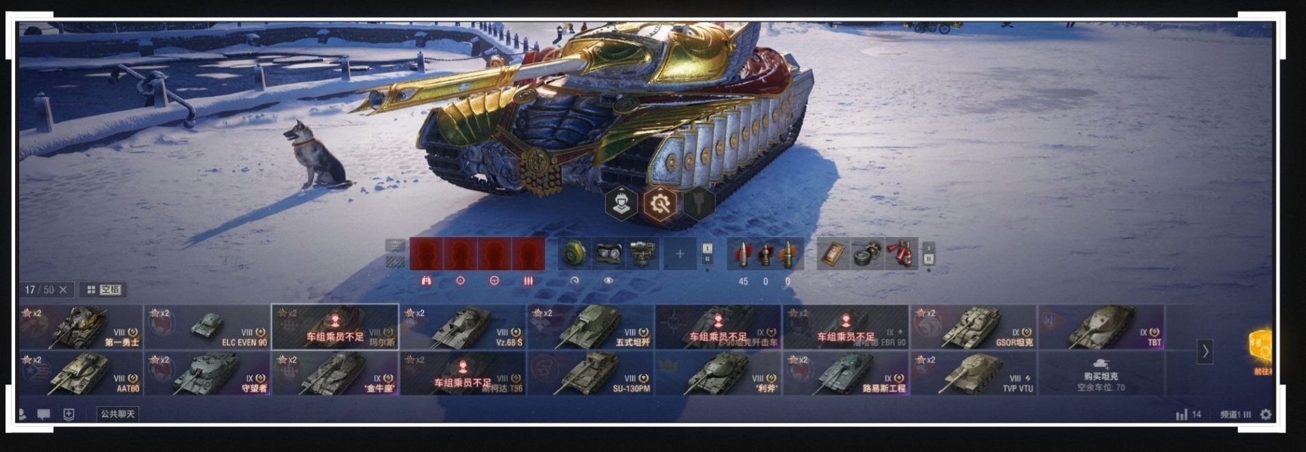 注意事项:1,进入游戏后,如果车辆情况不符。那是因为前面的玩家筛选了自己玩的坦克,其他的隐藏了。坦克显示栏,左下角小坦克标志,点进去把所有系别和级别选上,坦克就全部出来了。