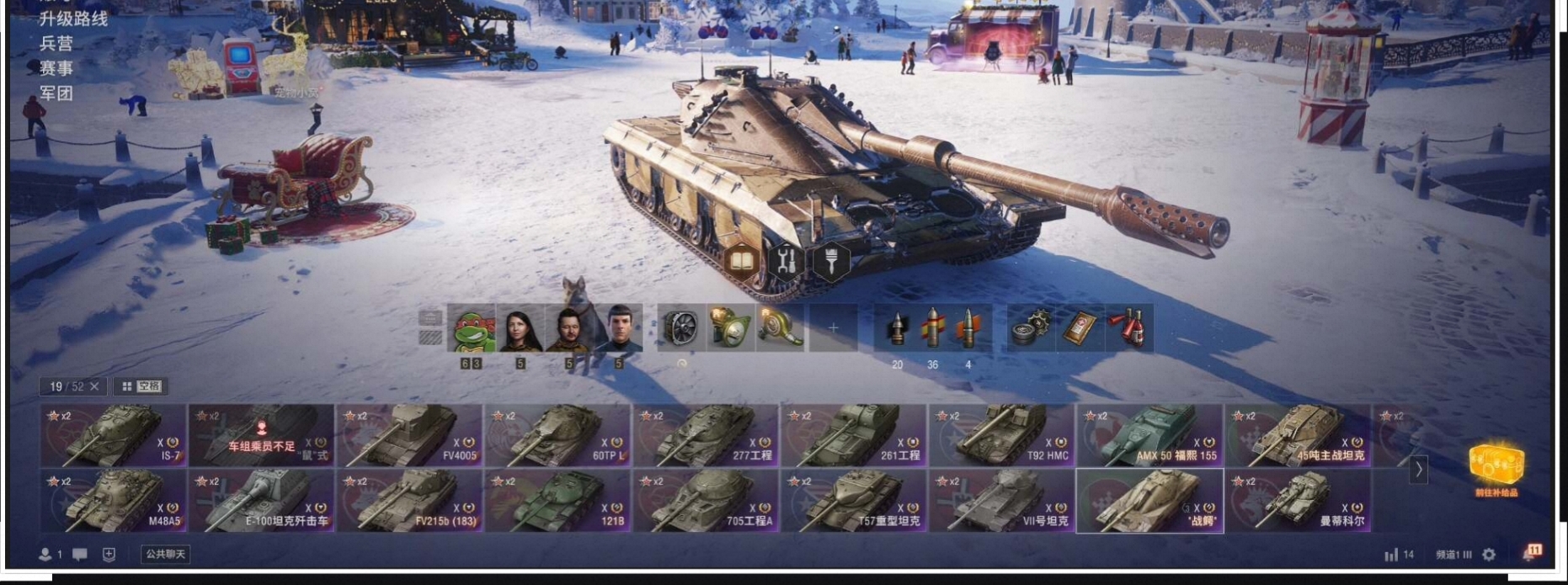 坦克世界最新圣诞箱子号出租。11级5台:BZ-79,囊鼠,kR-1,豹120,鹿角虫。10金:最新开箱战鳄,3d45吨,183,121b,伏羲155。9金:最新开箱E90歼击车,最新TBT,最新路易斯工程,金牛座,守望者等。8金:最新开箱利斧等。