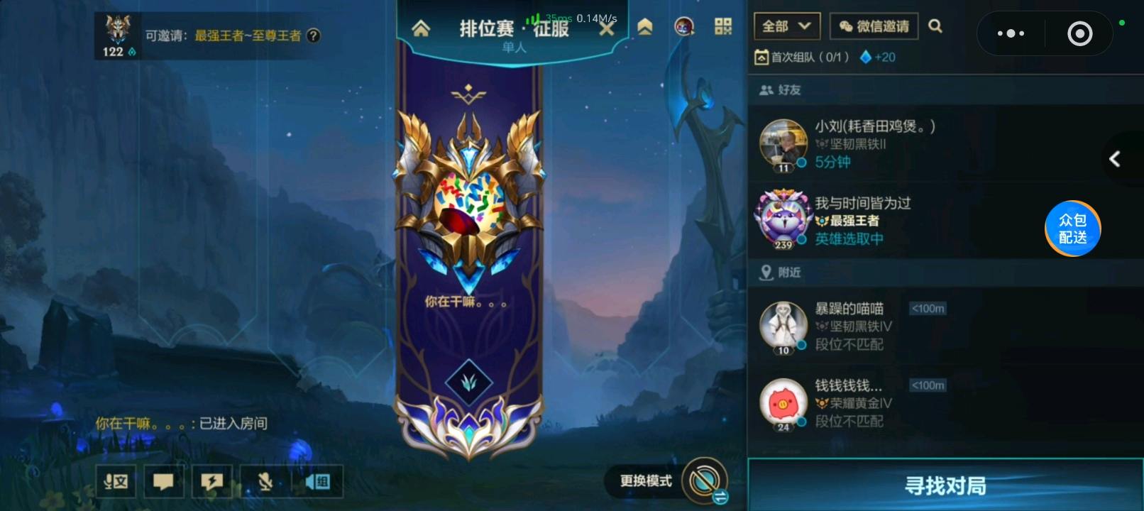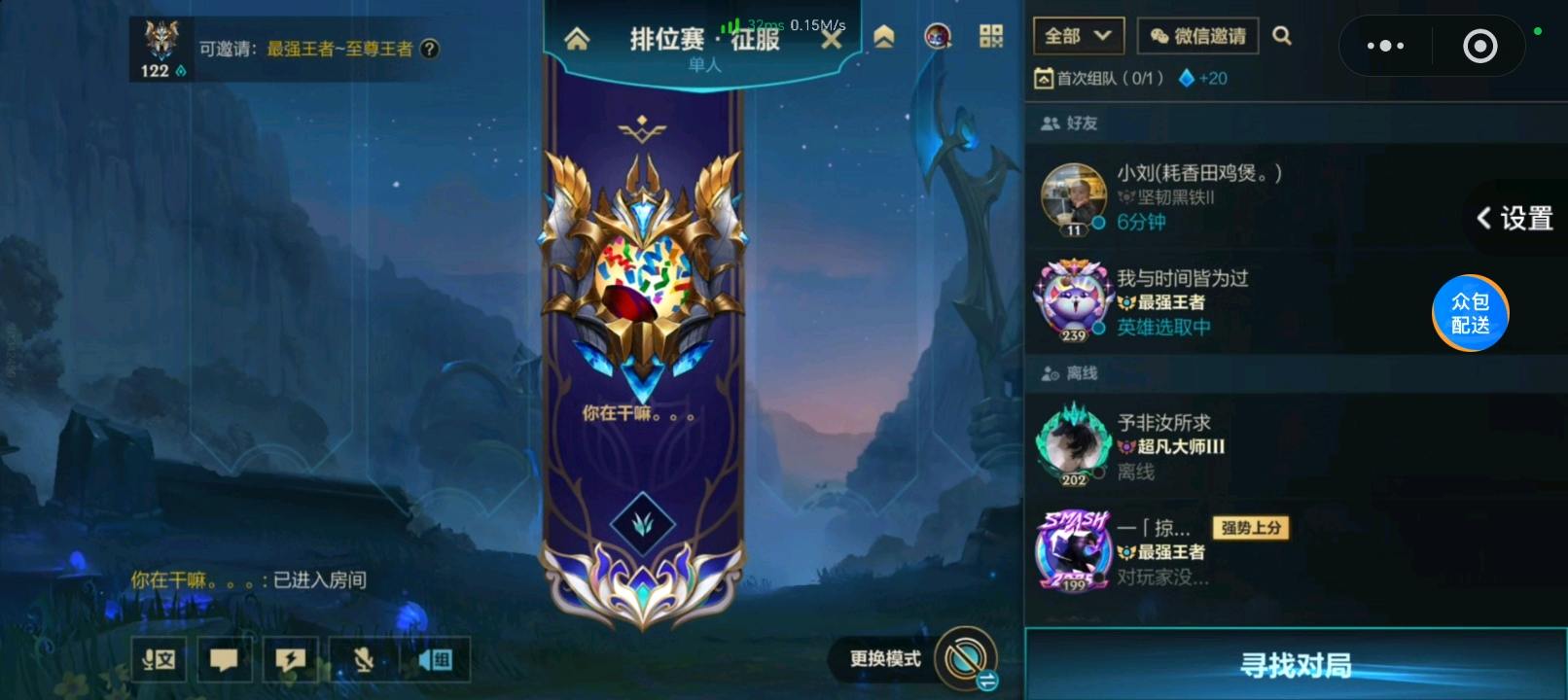 【安卓】 高端匹配高端局。至尊122颗星。
