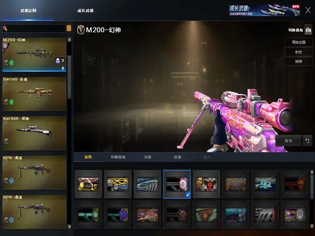 王者武器:王者之鲨-觉醒版;烟雾弹-雷霆王者-觉醒版;王者之刺-觉醒版;炫金超新星;王者白虎-觉醒版;炫金雷神;王者之锋-觉醒版;王者之心-觉醒版;王者之心;王者之影-觉醒版;炫金骑士;王者之势-觉醒版;炫金武士;炫金黑龙