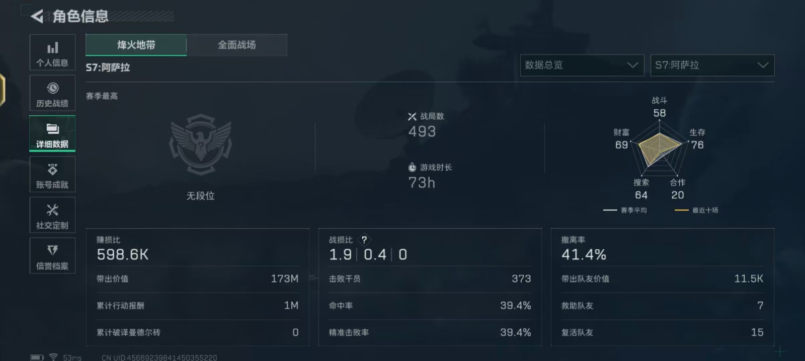 - 烽火地带段位: 青铜