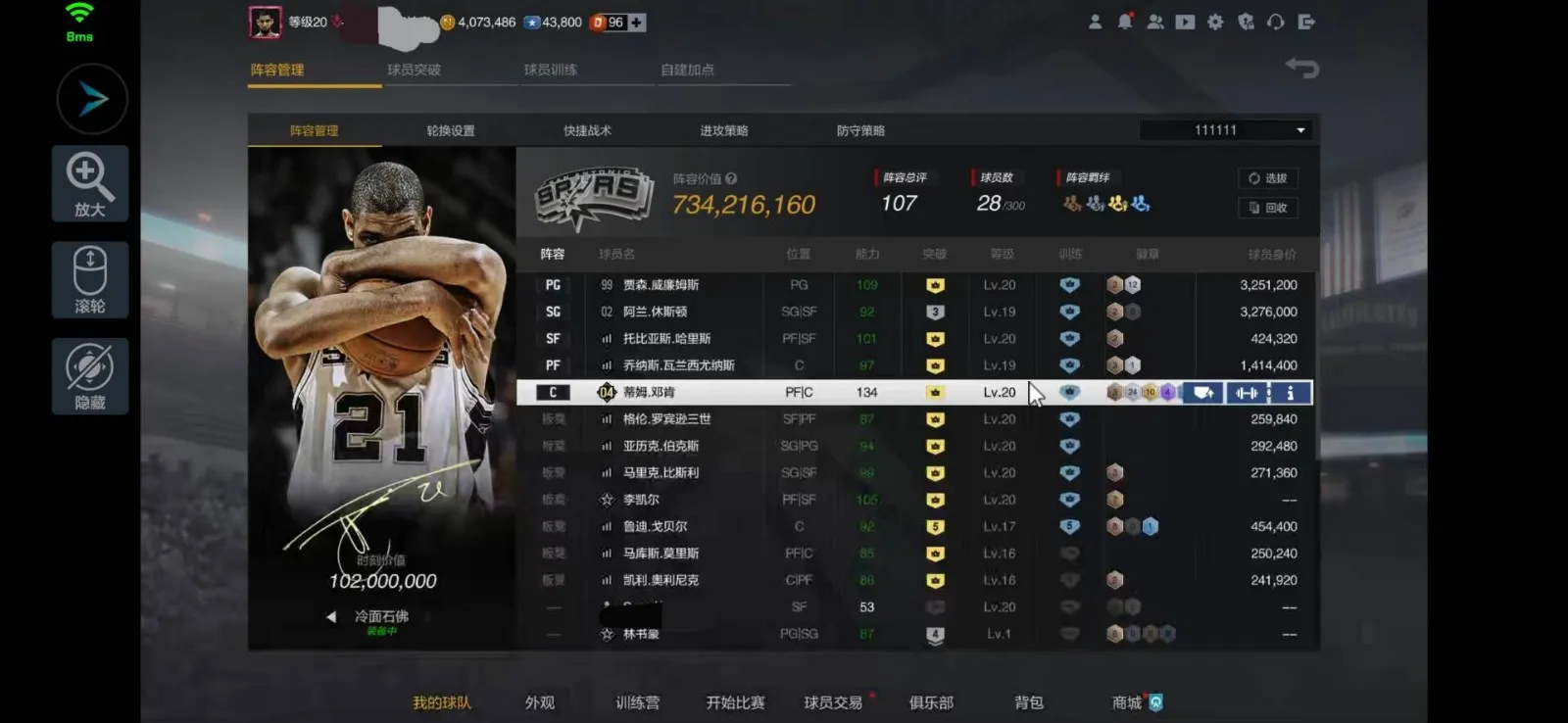 🌩️【7.5亿】⚡10突双时刻冷面石佛邓肯⚡石佛蒂姆邓肯 呆呆原地大风车 版本上分T0空间C