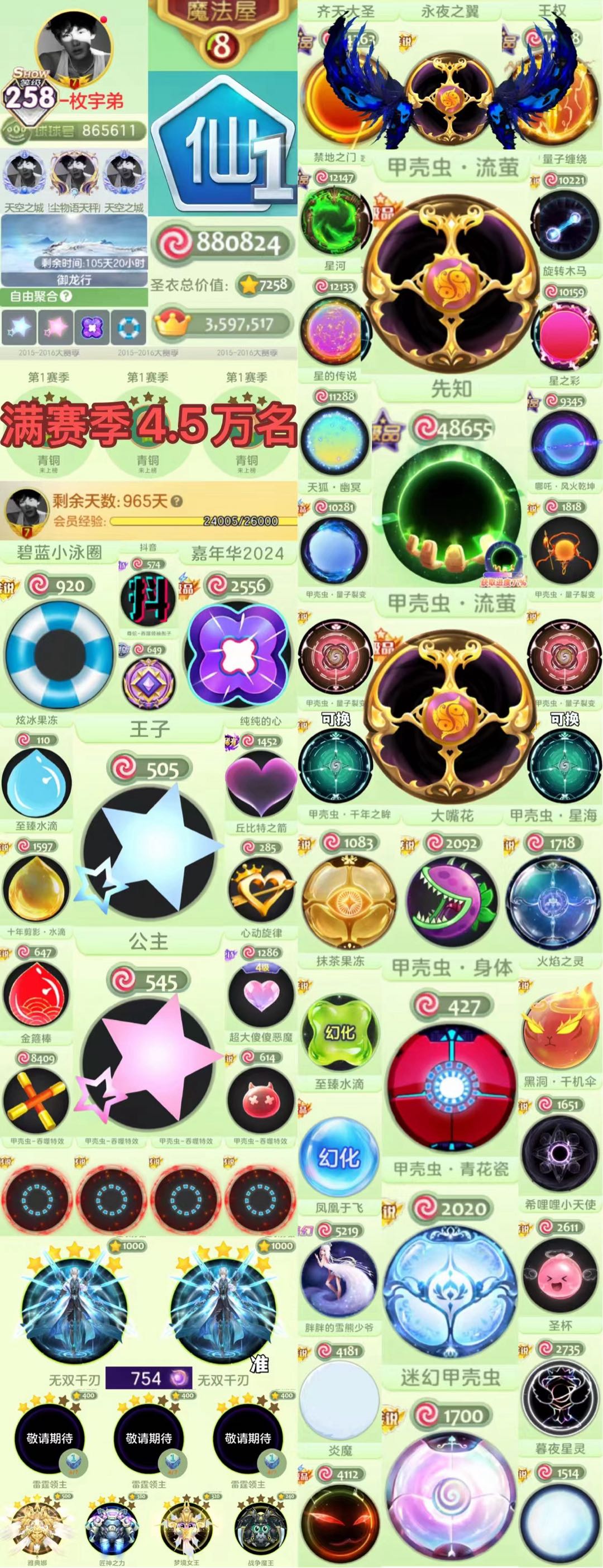 【全平台】 满赛季4万名 公主王子 24嘉年华 黑甲 幻化量子裂变 大翅膀 满赛季黑甲